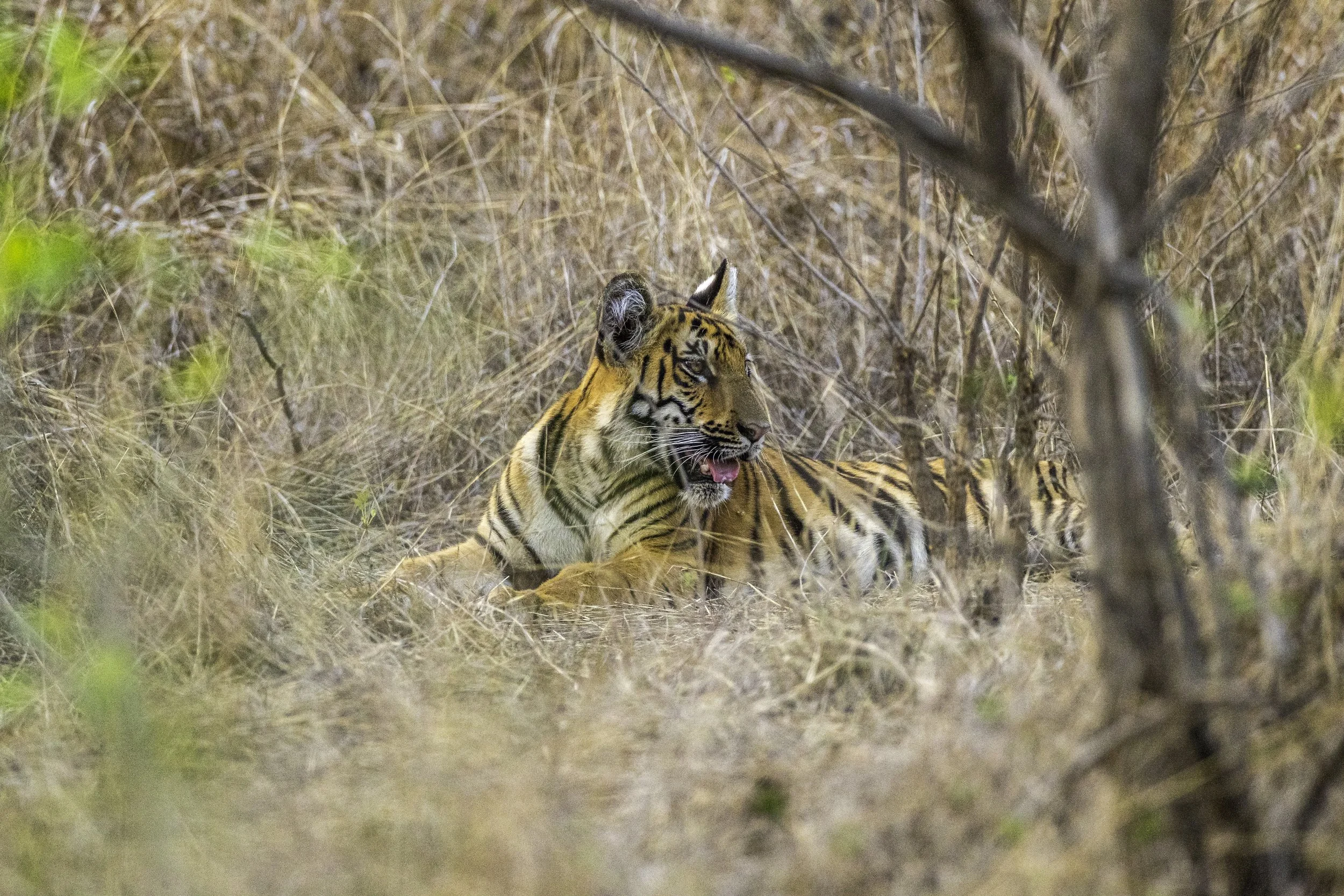 The jungles of central India, dating back millions of years, are home to some of the most varied wildlife in India. From bears to boars, monkeys to mongoose, from the forest floor to the tree tops, from the smallest species to the largest, this is Kipling’s Jungle Book made flesh and blood and home to arguably the earth’s most beautiful killer - the Bengal Tiger. A solitary hunter that combines stealth and power to kill with a swipe of its paw or one bite of its powerful jaws and NOTHING quite prepares you for a tryst with a bengal tiger in the wild - neither Jim Corbett’s lilting colonial prose nor Disney’s brilliant films - especially more so when you espy cubs peering out from the dense foliage nearby. This was one such serendipitous instance where we found the tigress Archi with her three beautiful 7/8 month old cubs not once, not twice but over three consecutive days.