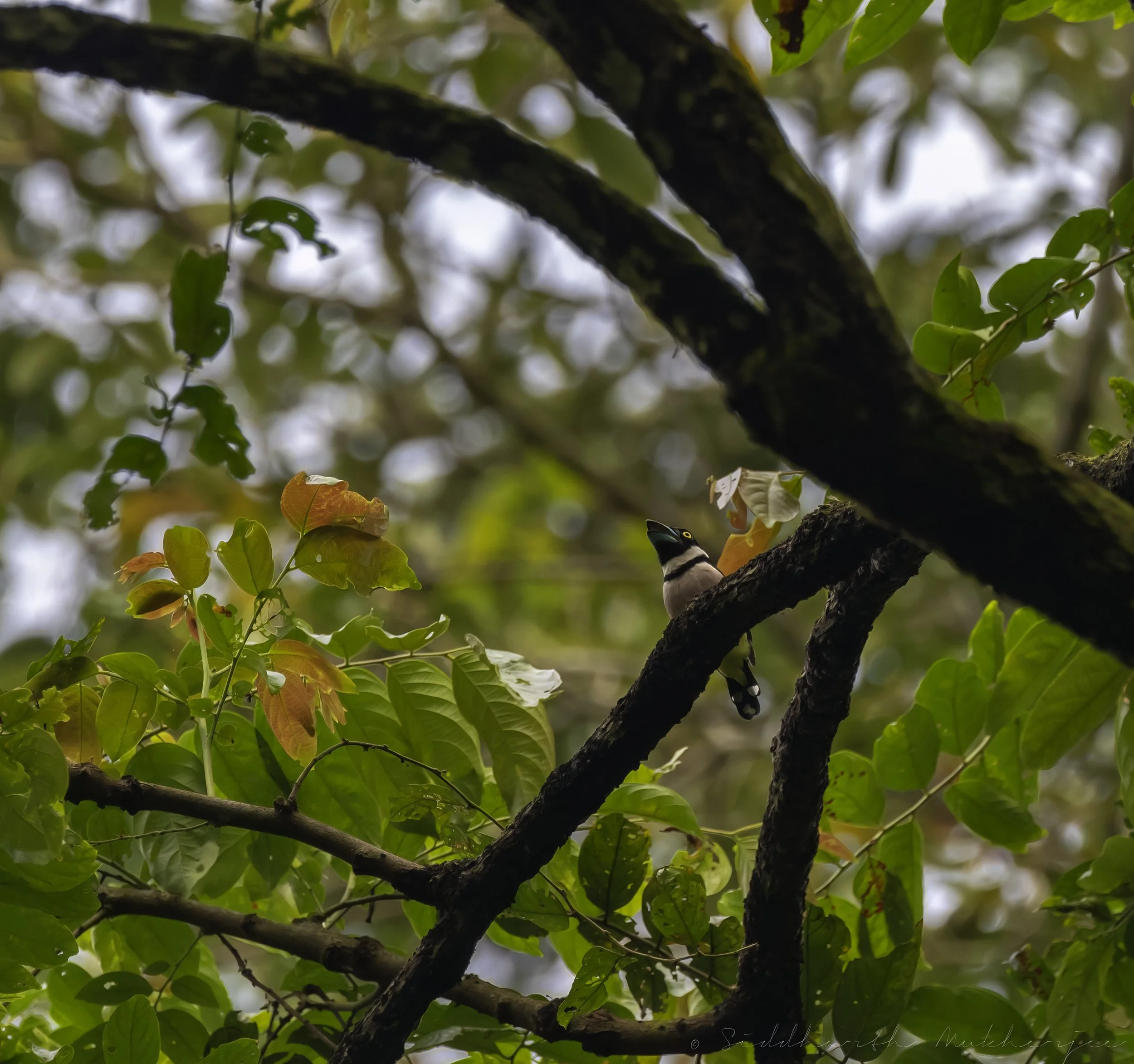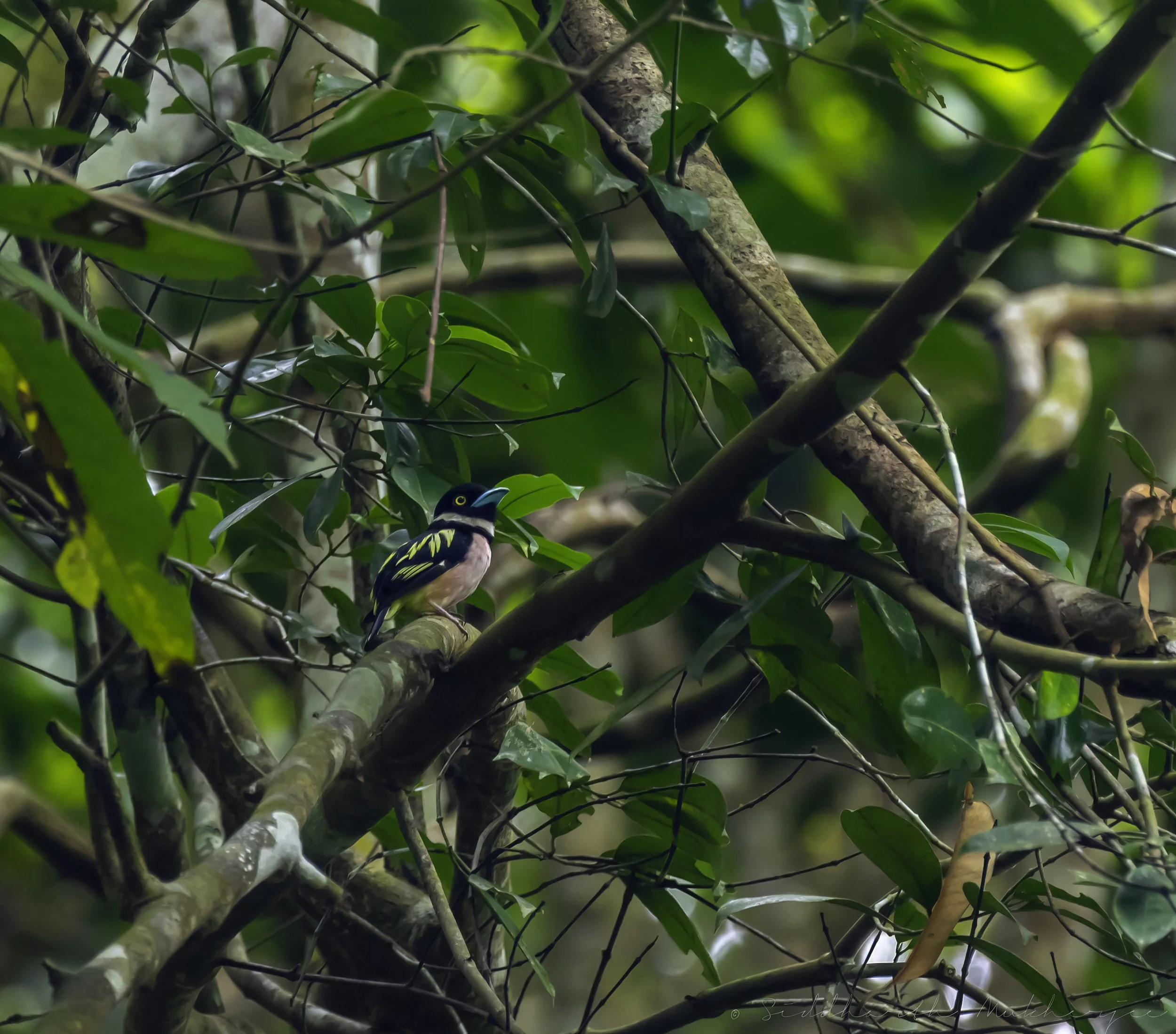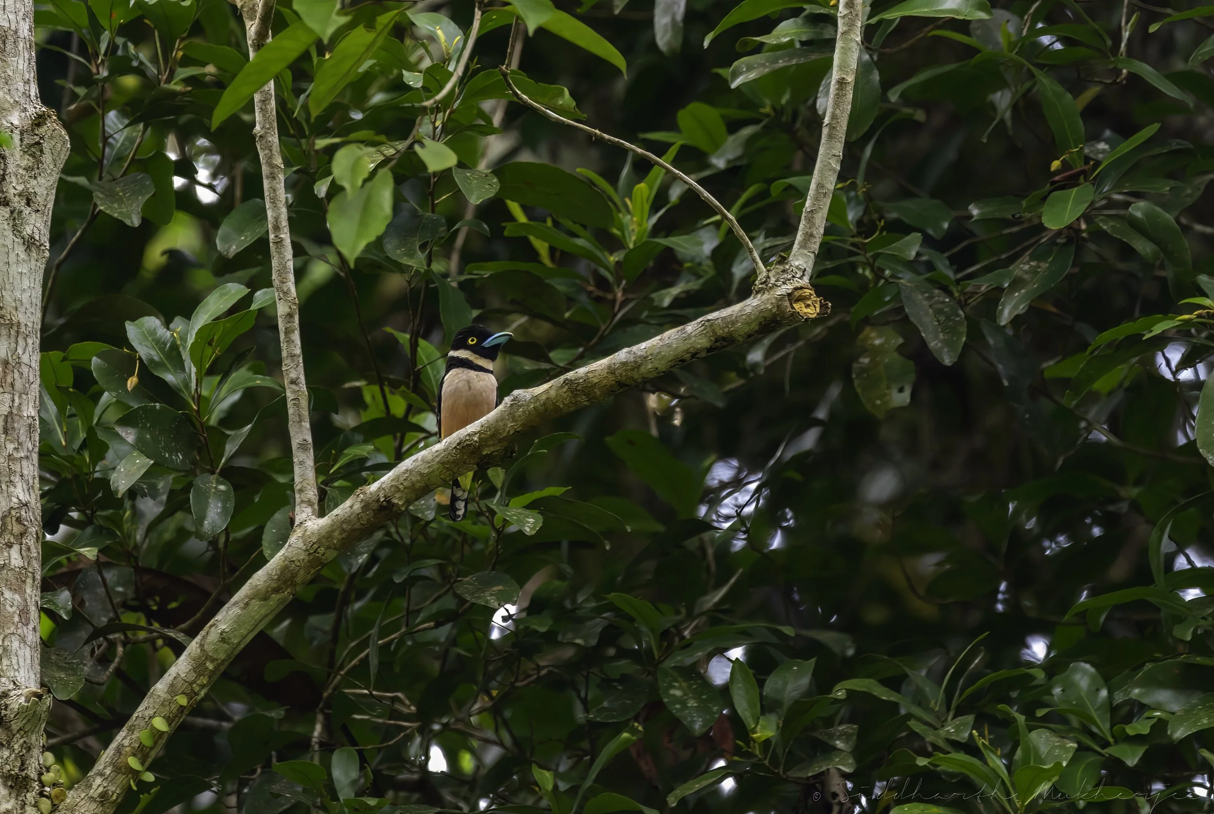 There are four subfamilies of broadbills: Smithornithinae (typical African broadbills), Calyptomeninae (Asian green broadbills), Eurylaiminae (assorted Asian broadbills) and Pseudocalyptomeninae (Grauer’s broadbill). There are 9 genera and 14 species of broadbills. They are thought to be closely related to pittas (Pittidae) and asities (Philepittidae). They are primarily forest birds and live in rainforests of tropical Asia and Africa. Little is known about the mating behaviour of this group. Some species are thought to be monogamous, others polygynous and some may be cooperative breeders. During displays, many broadbills make a loud trilling sound with their wings that can be heard up to 60 m away. Most species are gregarious. Some species eat primarily insects while others mainly eat fruit. Here we will see one of the Eurylaiminae (assorted Asian broadbills).