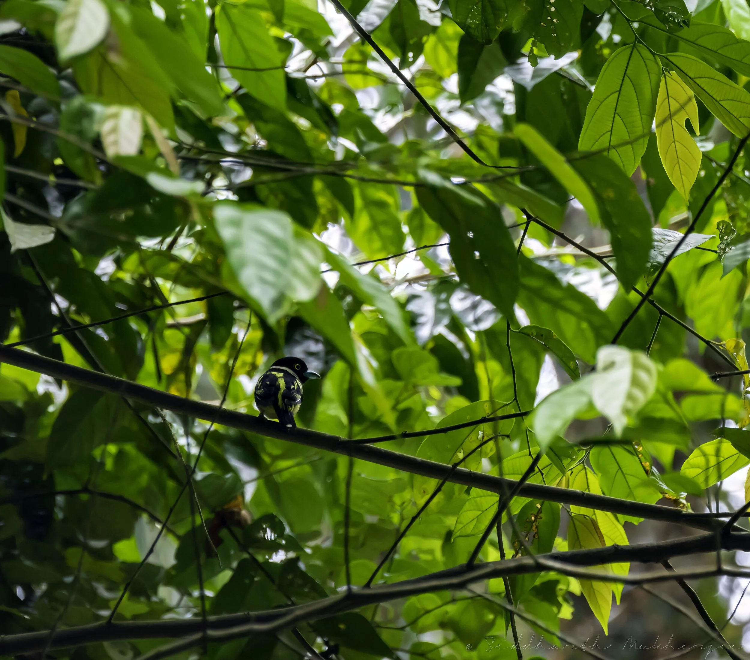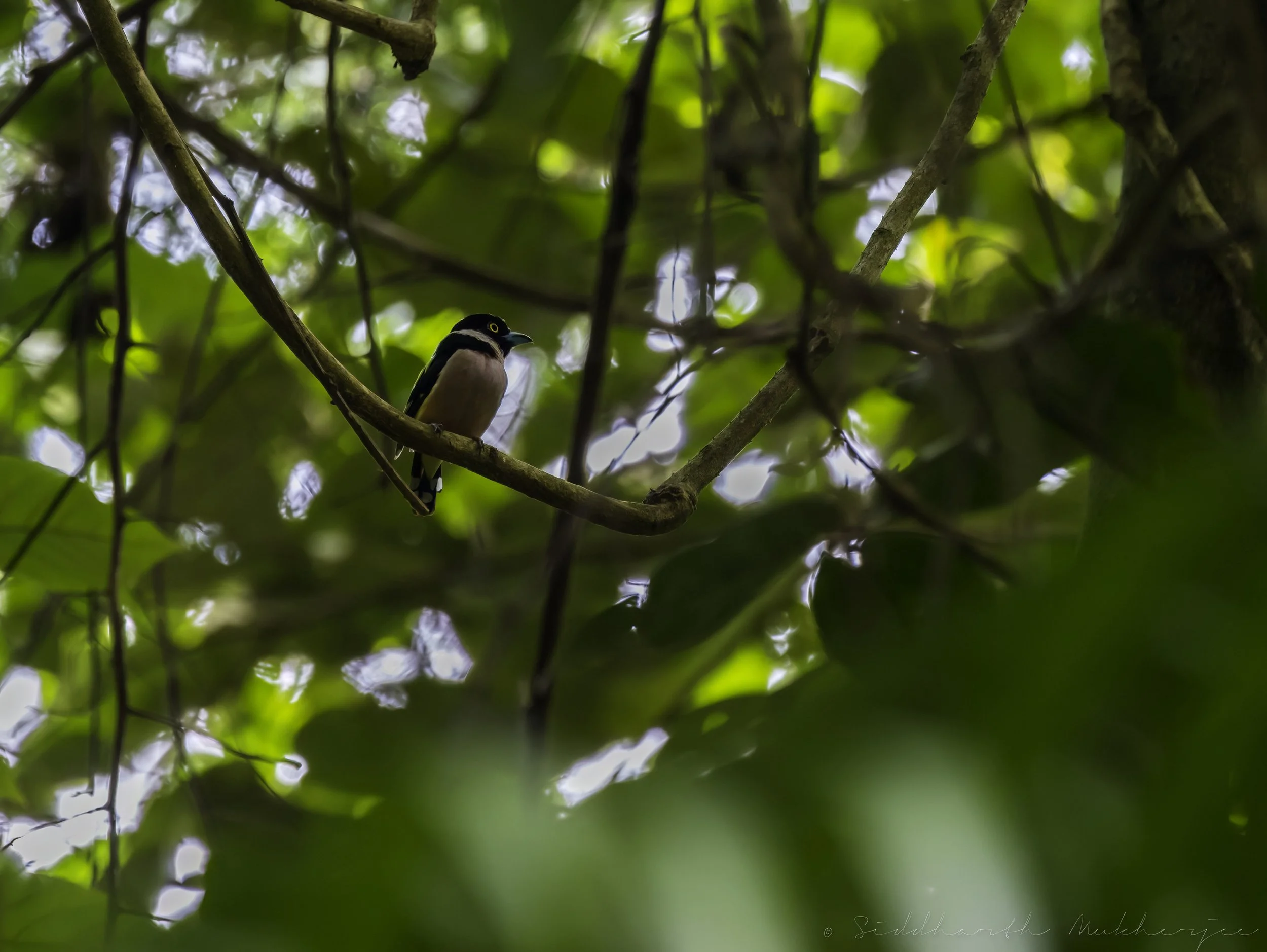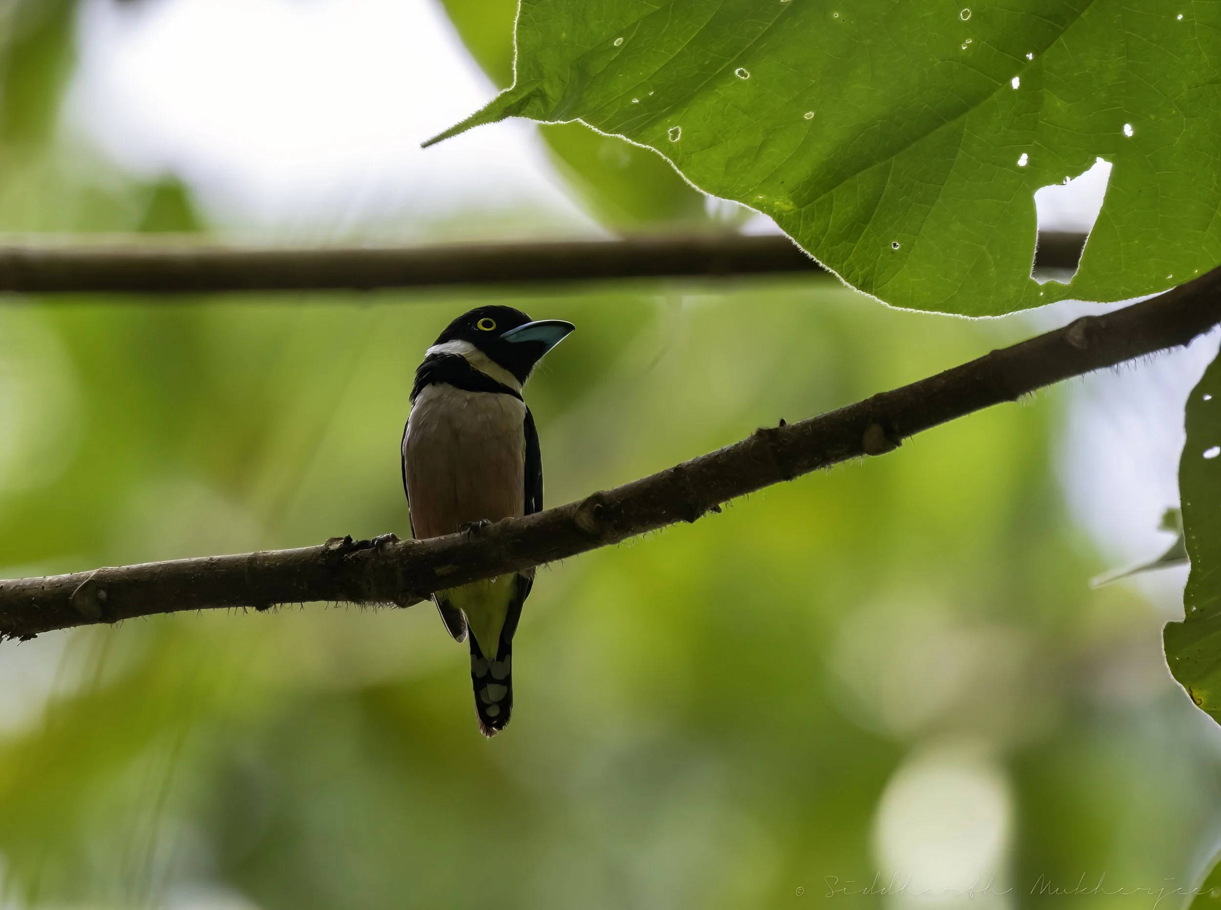 There are four subfamilies of broadbills: Smithornithinae (typical African broadbills), Calyptomeninae (Asian green broadbills), Eurylaiminae (assorted Asian broadbills) and Pseudocalyptomeninae (Grauer’s broadbill). There are 9 genera and 14 species of broadbills. They are thought to be closely related to pittas (Pittidae) and asities (Philepittidae). They are primarily forest birds and live in rainforests of tropical Asia and Africa. Little is known about the mating behaviour of this group. Some species are thought to be monogamous, others polygynous and some may be cooperative breeders. During displays, many broadbills make a loud trilling sound with their wings that can be heard up to 60 m away. Most species are gregarious. Some species eat primarily insects while others mainly eat fruit. Here we will see one of the Eurylaiminae (assorted Asian broadbills).