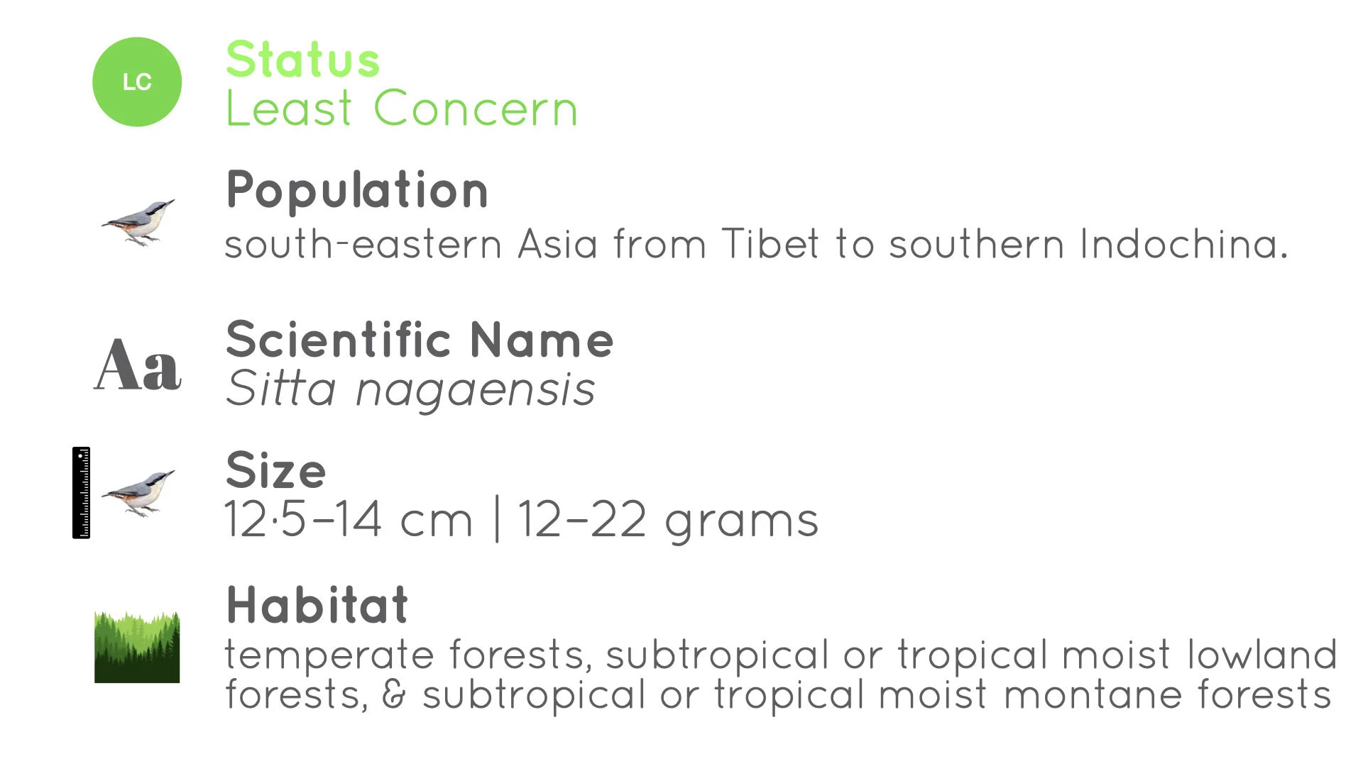 Most nuthatches breed in the temperate or montane woodlands of the Northern Hemisphere, although two species have adapted to rocky habitats in the warmer and drier regions of Eurasia. However, the greatest diversity is in Southern Asia, and similarities between the species have made it difficult to identify distinct species. All members of this genus nest in holes or crevices. Most species are non-migratory and live in their habitat year-round, although the North American red-breasted nuthatch migrates to warmer regions during the winter. A few nuthatch species have restricted ranges and face threats from deforestation.