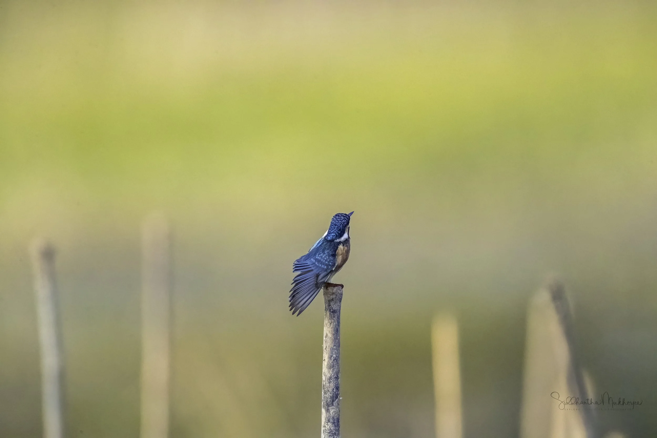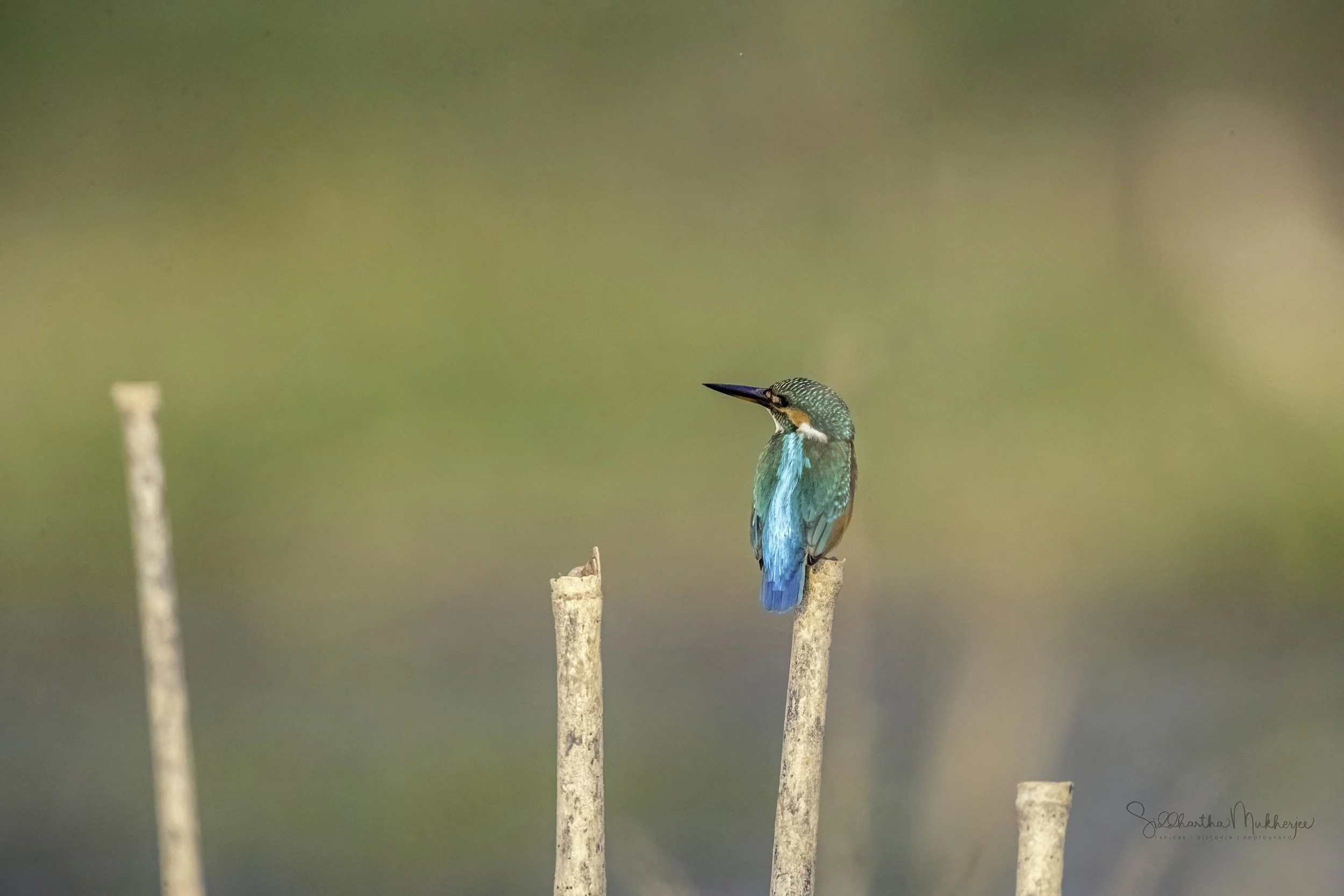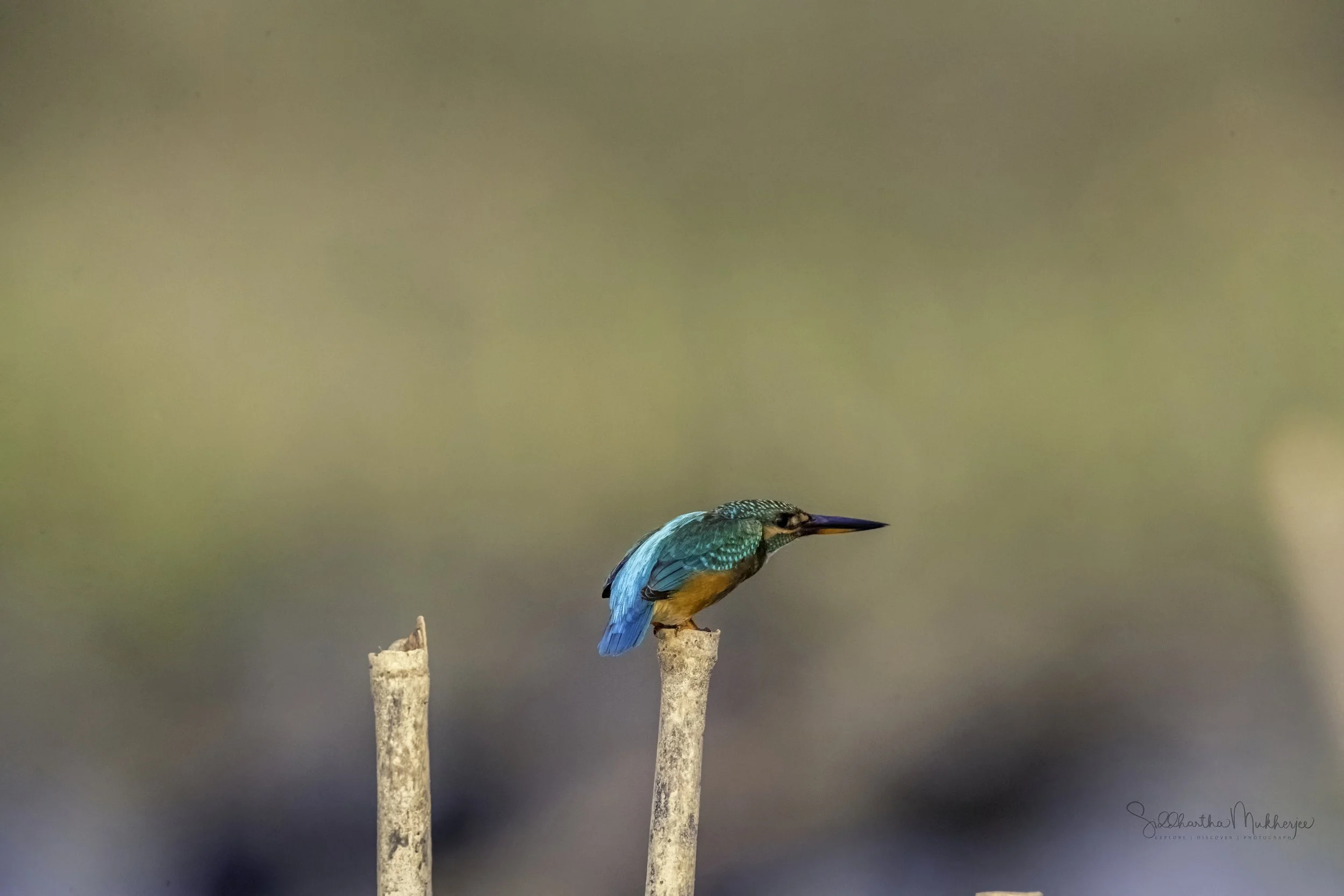 After another long hiatus I am continuing the story of kingfishers from my earlier three part series, A clique of Kingfishers, today I have another one from that list of beautiful birds - the Common Kingfisher or the Small Blue Kingfisher. The Common Kingfisher is a beautiful little blue-and-orange bird with a long, pointed bill often rather shy and inconspicuous despite its bright plumage. Found along rivers, streams, lakes, and ponds—almost any fresh or brackish habitat with small fish it often perches quietly in trees over water; most often seen in very fast low flight as a turquoise flash over the water, usually flying away. It is easily detected once its high, shrill whistled call is learned, even if the bird itself is hidden. It is the only small blue kingfisher over much of its range.