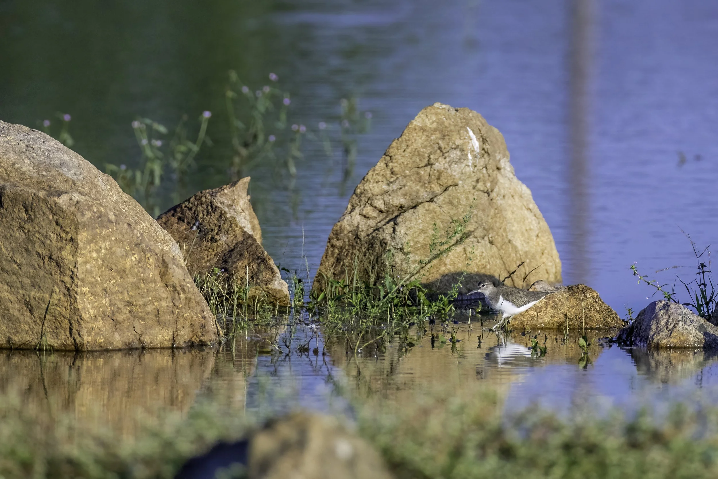 In this internationally significant wetland Reserve, the sandpiper's habitat is dominated by mangroves, intertidal mudflats, and tidal creeks. During low tide, vast mudflats are exposed, providing a rich larder of marine invertebrates. The Common Sandpiper can be photographed alongside a wide variety of other migratory waders like Whimbrels and Common Greenshanks, though it typically forages alone or in small, single-species groups. The environment is a dynamic mix of saline and fresh water, and the sandpiper adapts its diet to the abundant crustaceans and polychaete worms found in the mud. Photography here benefits from strategically placed bird-watching hides and boardwalks, offering unique angles of the bird's active, pecking foraging style in the exposed mudflats or along rocky shores.