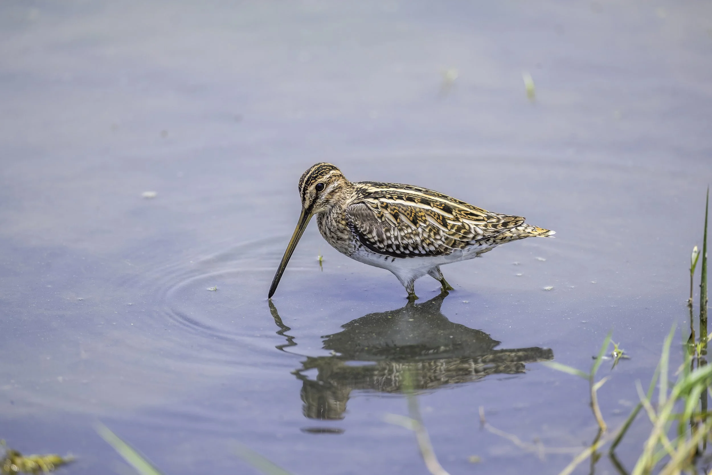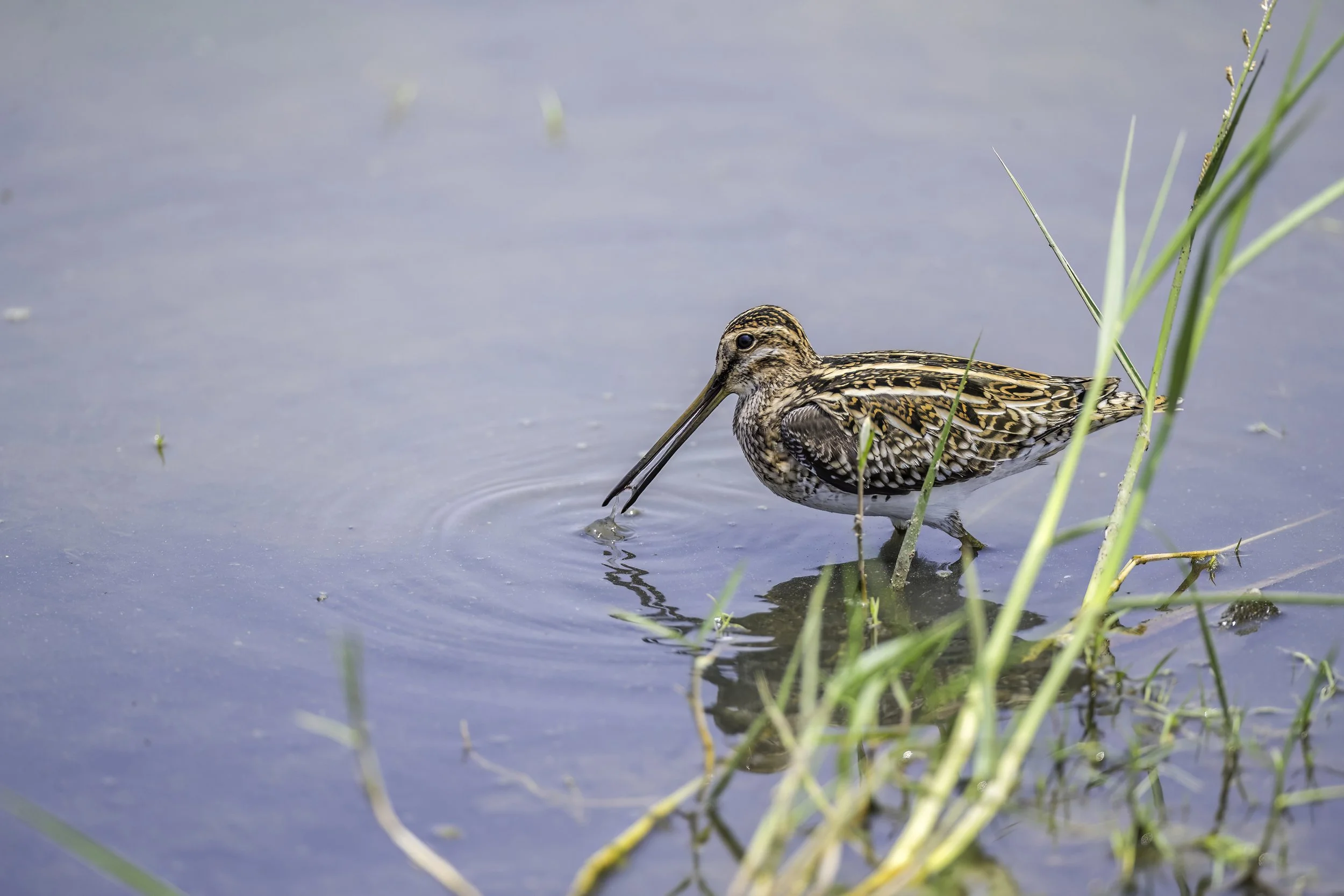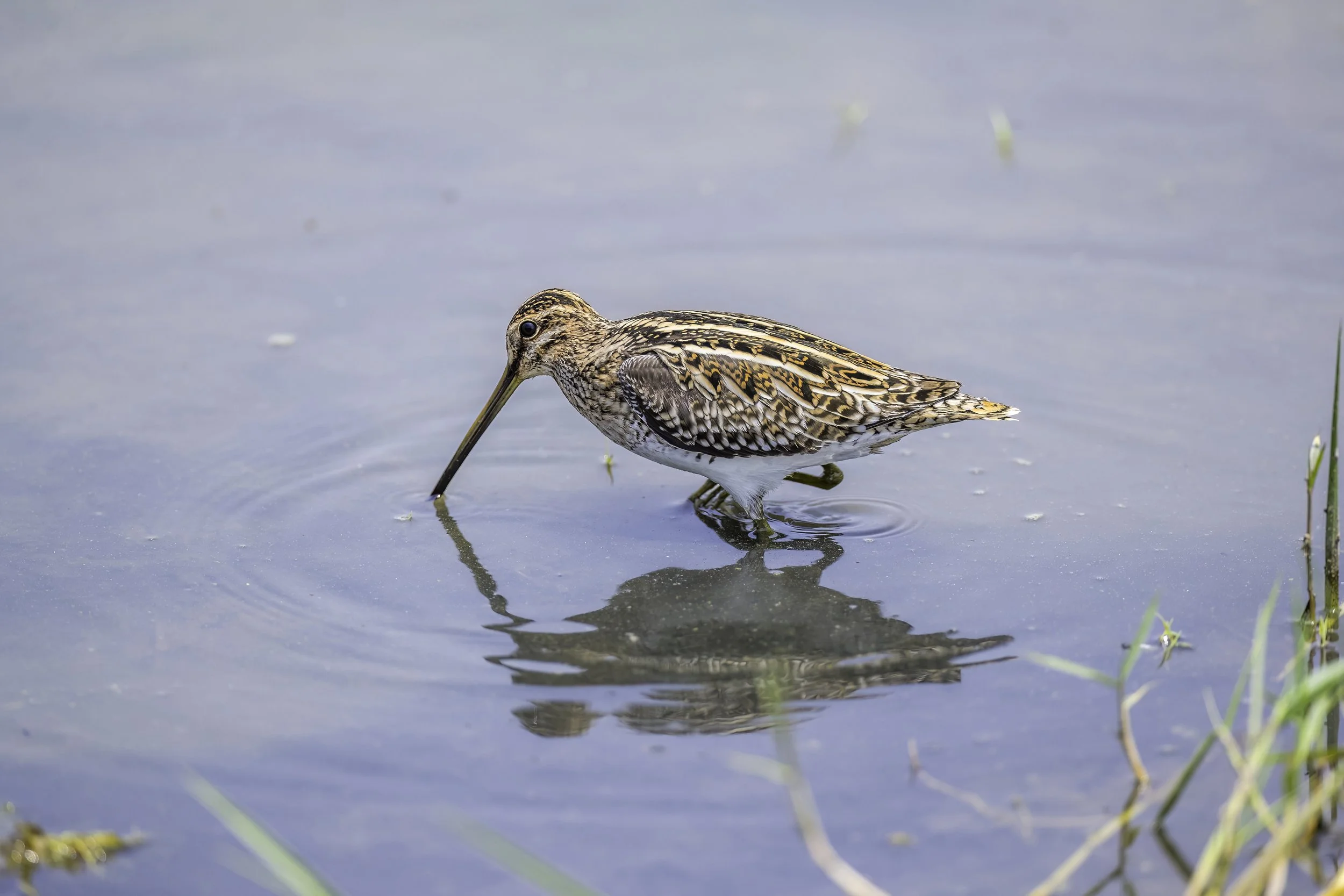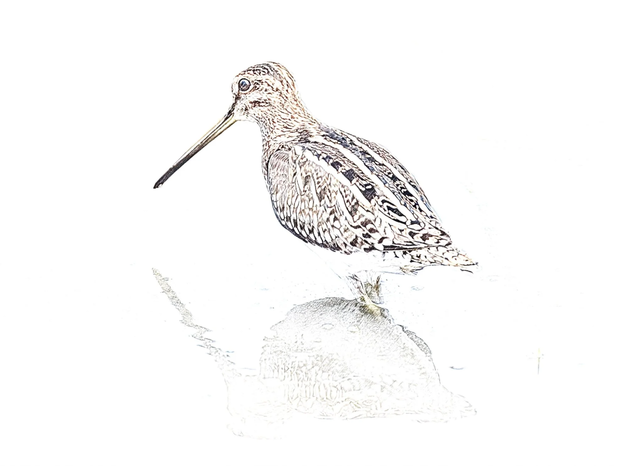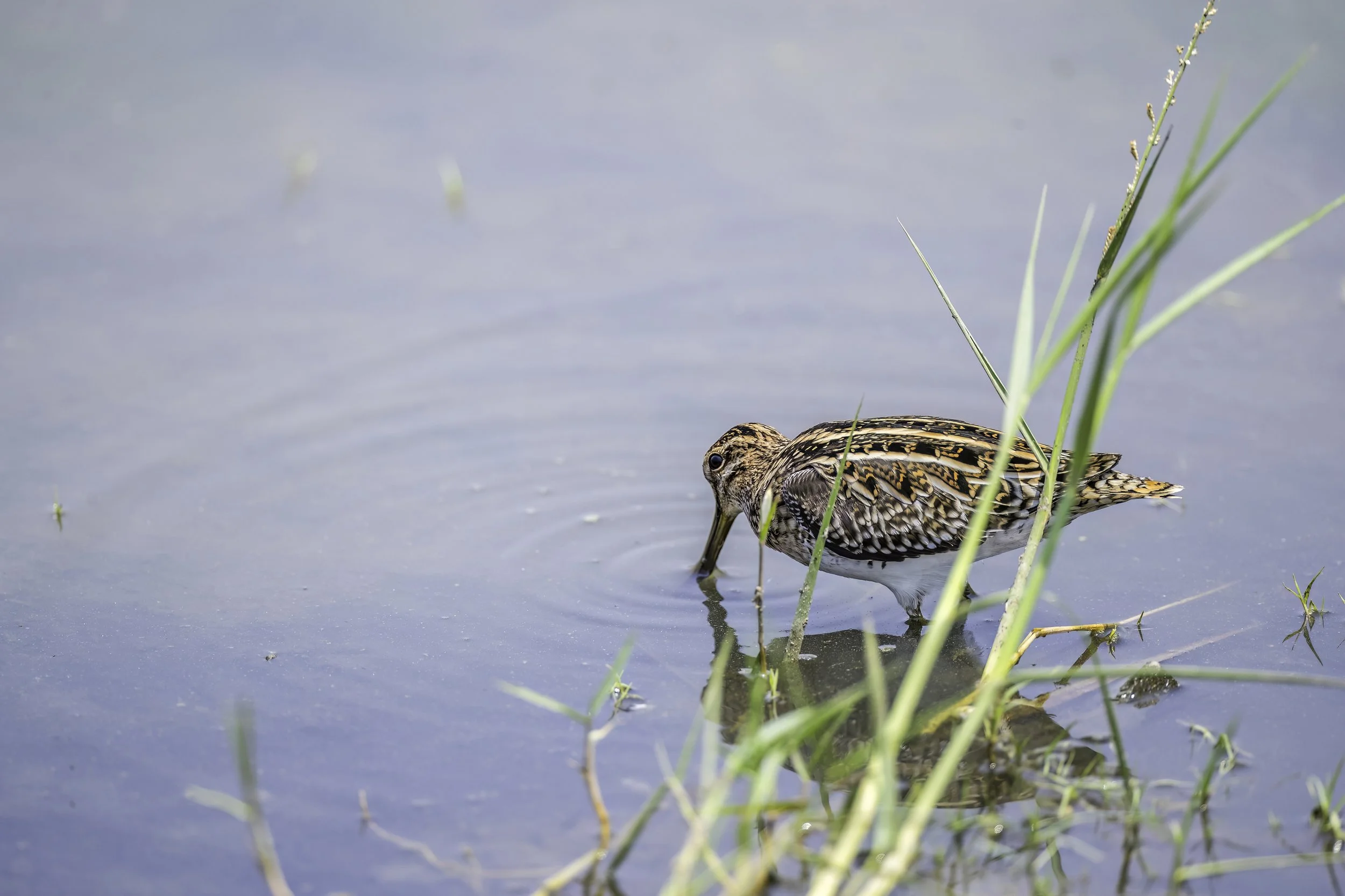 The Common Snipe is a well camouflaged bird, it is usually shy and conceals itself close to ground vegetation and flushes only when approached closely. When flushed, they utter a sharp note that sounds like scape, scape and fly off in a series of aerial zig-zags to confuse predators. They forage in soft mud, probing or picking up food by sight. They mainly eat insects and earthworms, also some plant material.