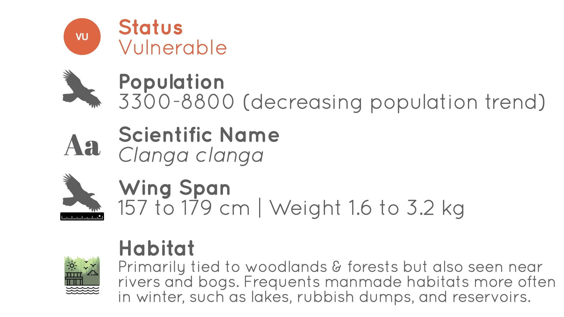 The greater spotted eagle is classified as vulnerable to extinction by the IUCN. Based on statistics sourced from Bird Life International, the world population of this eagle is declining and is estimated at 3300-8800 owing to extensive habitat loss and persistent persecution.