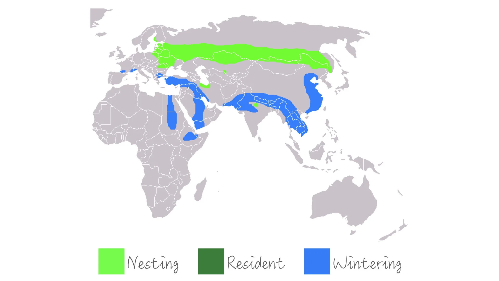 This is a species of wooded country. The population is entirely migratory. It breeds from northern Europe eastwards across Eurasia, and winters in south-eastern Europe, north-eastern Africa, the Middle East and the Indian Subcontinent. Migration to the breeding grounds takes place fairly late; in Bhutan, for example, birds can be seen with some regularity until the end of March.