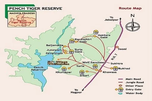 Pench National Park, nestled in the heart of India in the lower southern reaches of the Satpura hills, sprawls a massive 758 km² across the states of Madhya Pradesh & Maharashtra. In Madhya Pradesh it is located in the districts of Seoni and Chhindwara. Named after the pristine River Pench it was immortalised by Rudyard Kipling in his Jungle Book. Every year millions make their way here to spot Akela (the Indian Wolf), Baloo (the Sloth Bear), Bagheera (the Black Panther) and Shere Khan (the Royal Bengal Tiger). It was declared a sanctuary in 1965 and elevated to the status of national park in 1975 and enlisted as a tiger reserve in 1992. The area has always been rich in wildlife dominated by fairly open canopy, mixed forests with considerable shrub cover and open grassy patches. The high habitat heterogeneity favours a high population of Chital and Sambhar. Pench tiger reserve has highest density of herbivores in India (90.3 animals per km²).