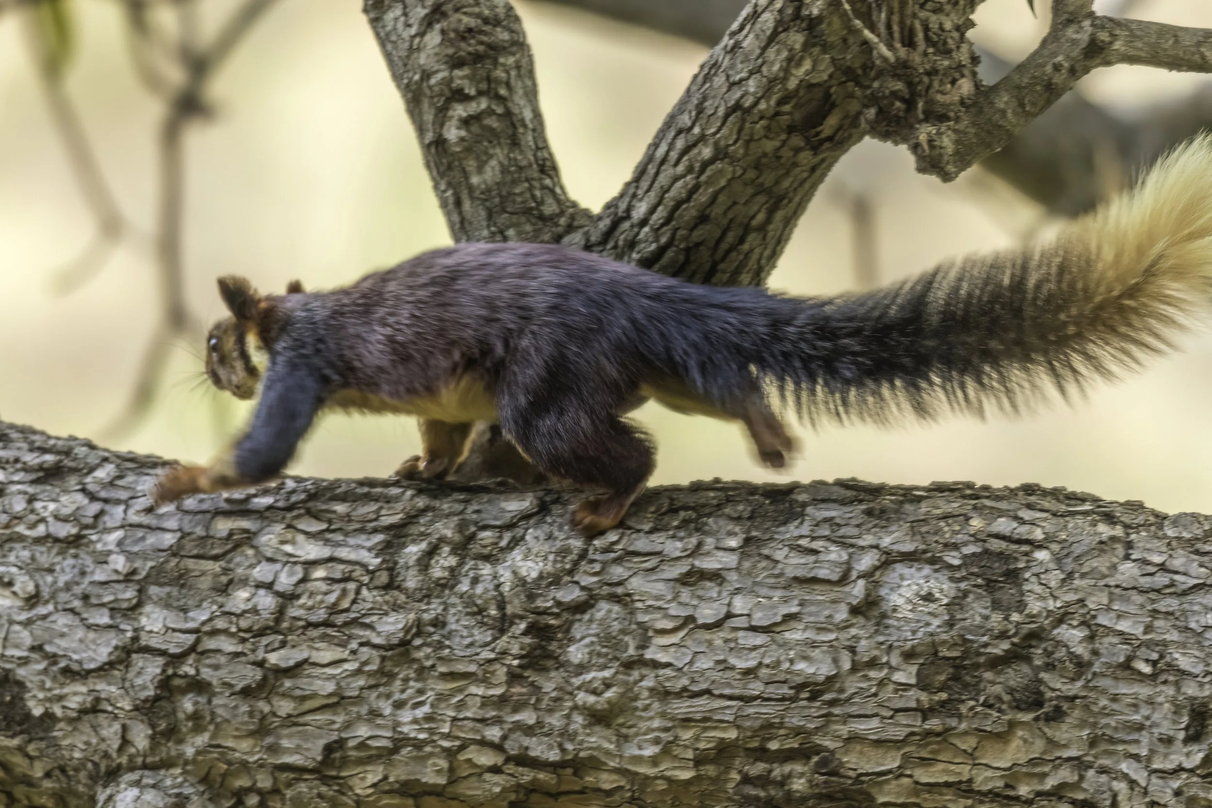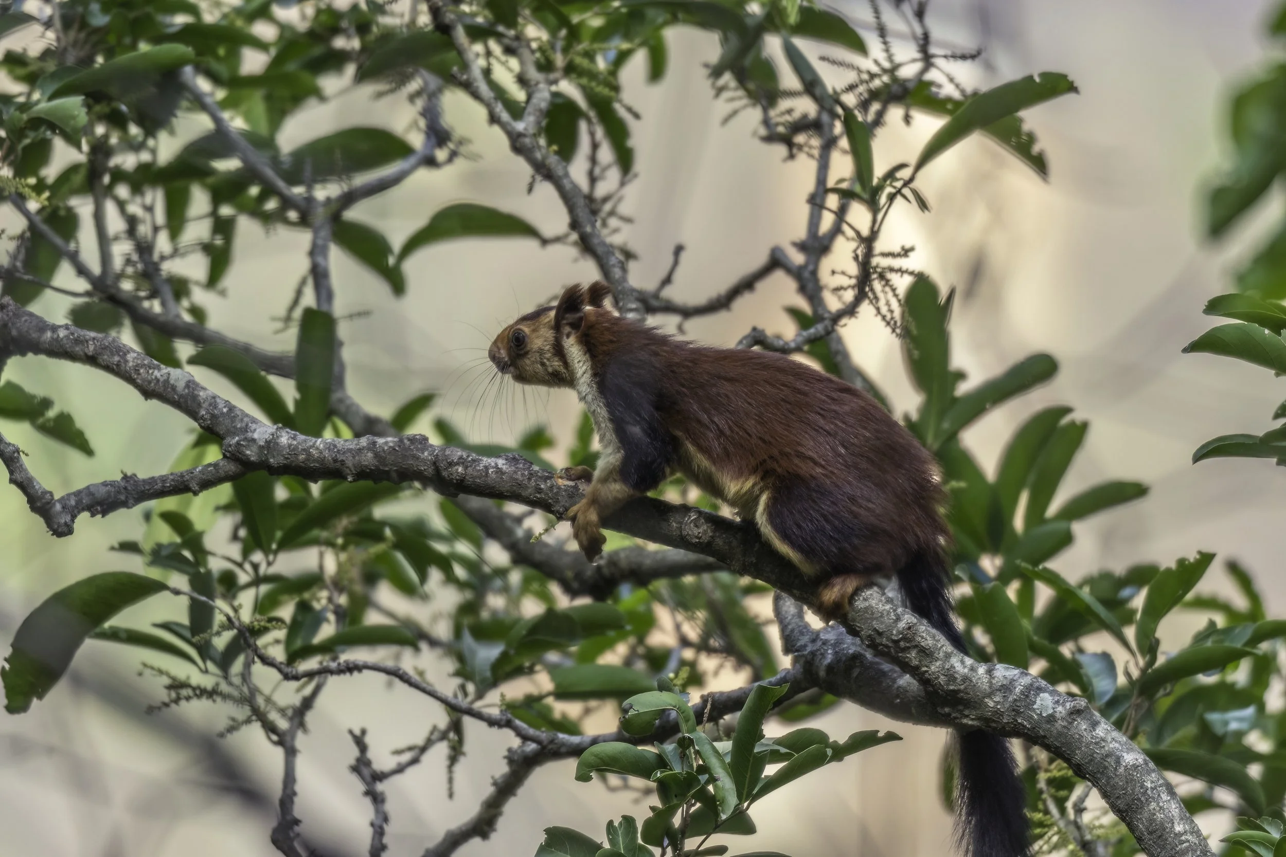 India, with its vast and diverse ecosystems, is home to an incredible variety of wildlife. Among the most captivating of these creatures are the giant squirrels. These remarkable rodents, known for their vibrant colours and impressive size, are not just a marvel of nature but also play a crucial role in the forest ecosystems they inhabit. The word squirrel has its origins in the Greek word skiouros which stands for ‘bushy tails’. Giant squirrels take their titles seriously - while the ubiquitous Indian Palm Squirrel weighs about 100 grams, giant squirrels weigh well over a kilogram or more! India is home to the Indian Giant Squirrel, the Black Giant Squirrel and the Grizzled Giant Squirrel. While they share several attributes with their other squirrel counterparts, they are also unique in their own way, size notwithstanding.