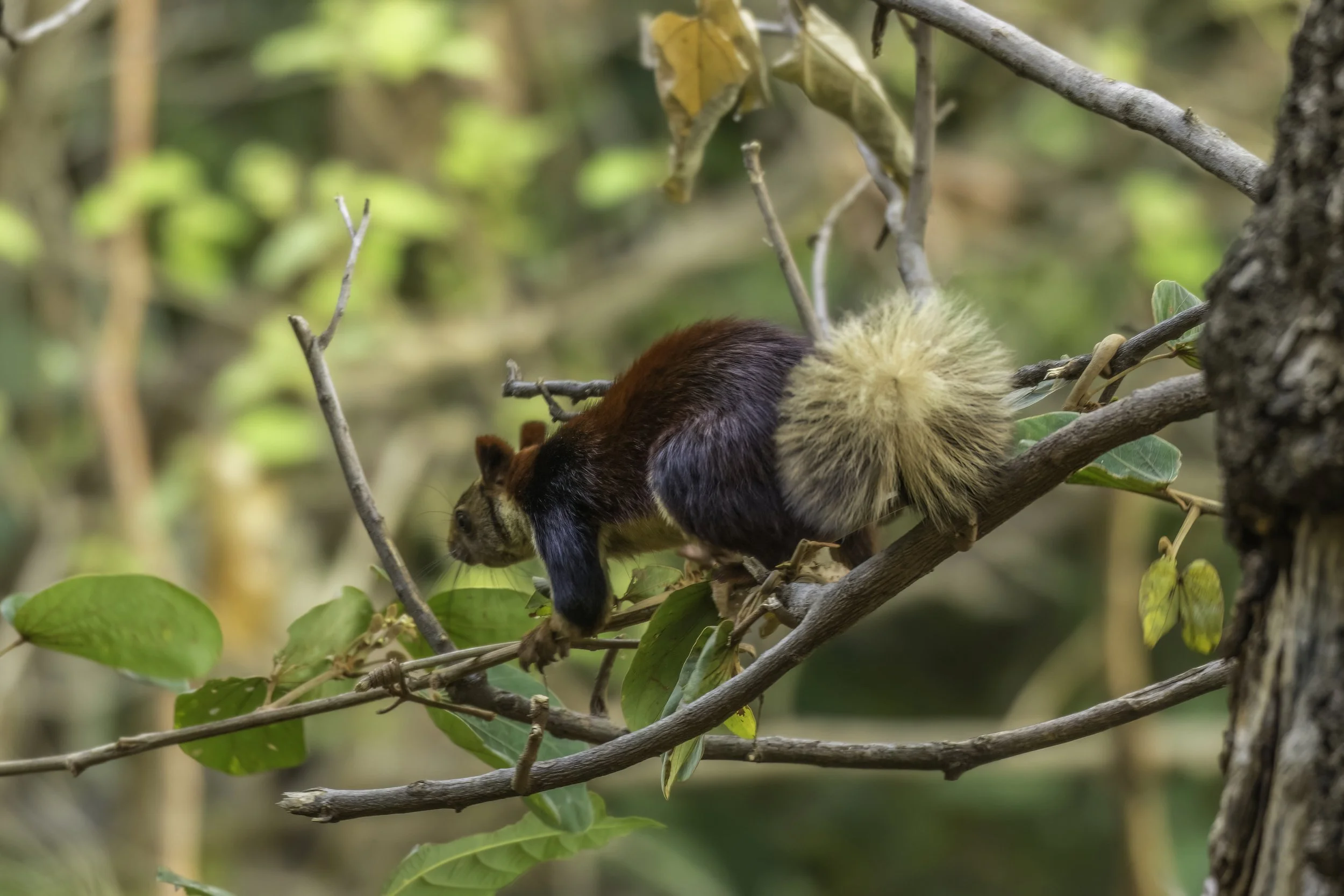 In 2020, the Zoological Survey of India conducted a first-of-its-kind survey of the Malayan or the Black Giant squirrel in the country. Squirrel numbers are intrinsic indicators of forest health and the study found that by 2050, India could lose about 90 per cent of its Malayan Giant Squirrel population, pushing the species to the brink of widespread extinction. Additionally, the study also highlights the lacunae in our understanding of squirrel populations and the threats they face. A more niche study of Indian Giant Squirrels in the Karlapat Wildlife Sanctuary, Odisha, revealed that current practices in the sanctuary cause damage to the nesting sites of the squirrels and impact their food sources. It is critical that we devise specific conservation measures for the giant squirrels in the country, if we are to see them galloping through our forests without a worry!