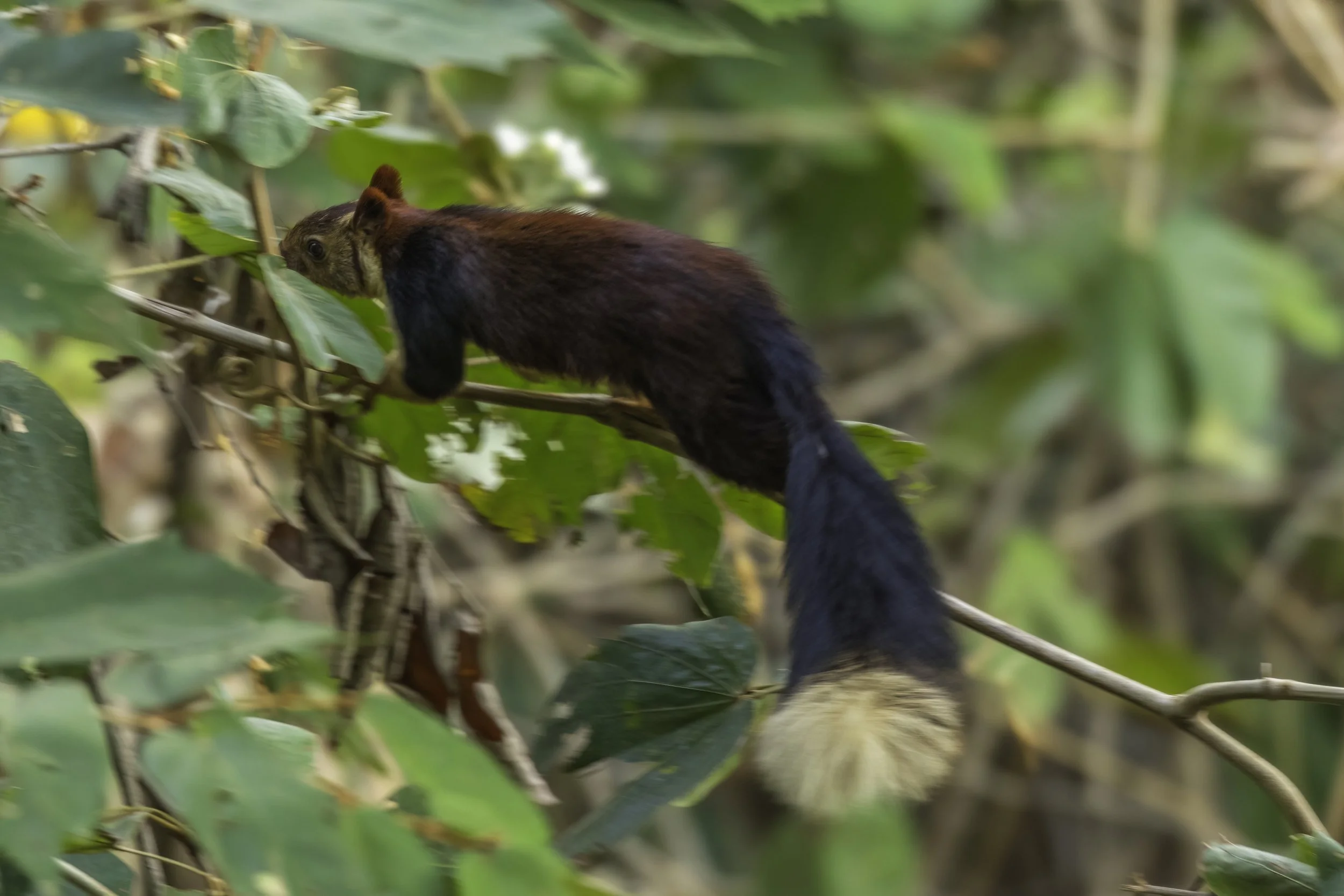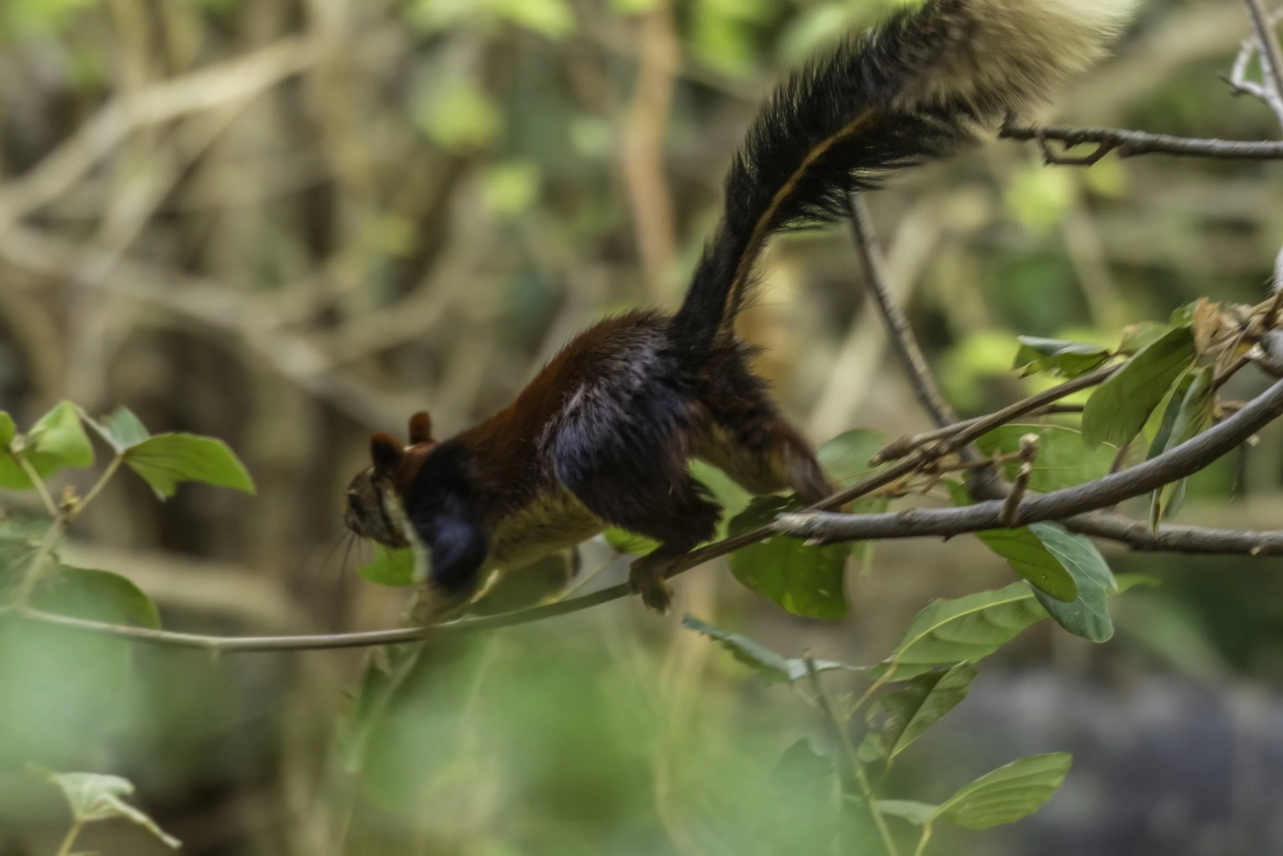 Giant squirrels are believed to be completely arboreal and need canopy continuity in their habitats. However, there have been times when these giant squirrels have come down to the ground to cross small stretches where they had no canopy. This is a clear indication of how these squirrels are adapting to their ever changing habitat and this also includes their diet. This species is primarily herbivorous, feeding on a wide variety of fruits, nuts, flowers, and bark. They are also known to occasionally consume insects, especially during times of food scarcity. Its loud, distinctive call can often be heard echoing through the forest. These calls serve as a form of communication between individuals, especially during mating season or when alerting others of potential danger. Some sources say they also make a particular whistling sound, but I am yet to hear it.