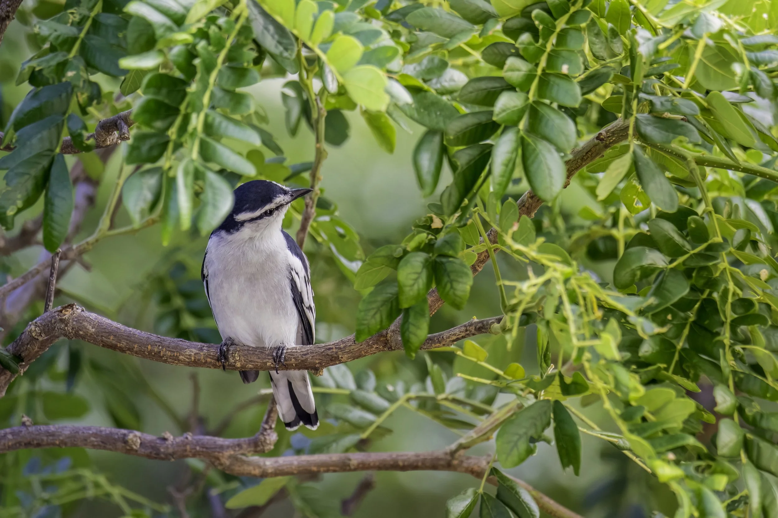 The biggest hurdle in photographing the Pied Triller is the dynamic range. Their bright white bellies and deep black mantles can easily lead to "blown out" highlights or "crushed" shadows in midday sun.
