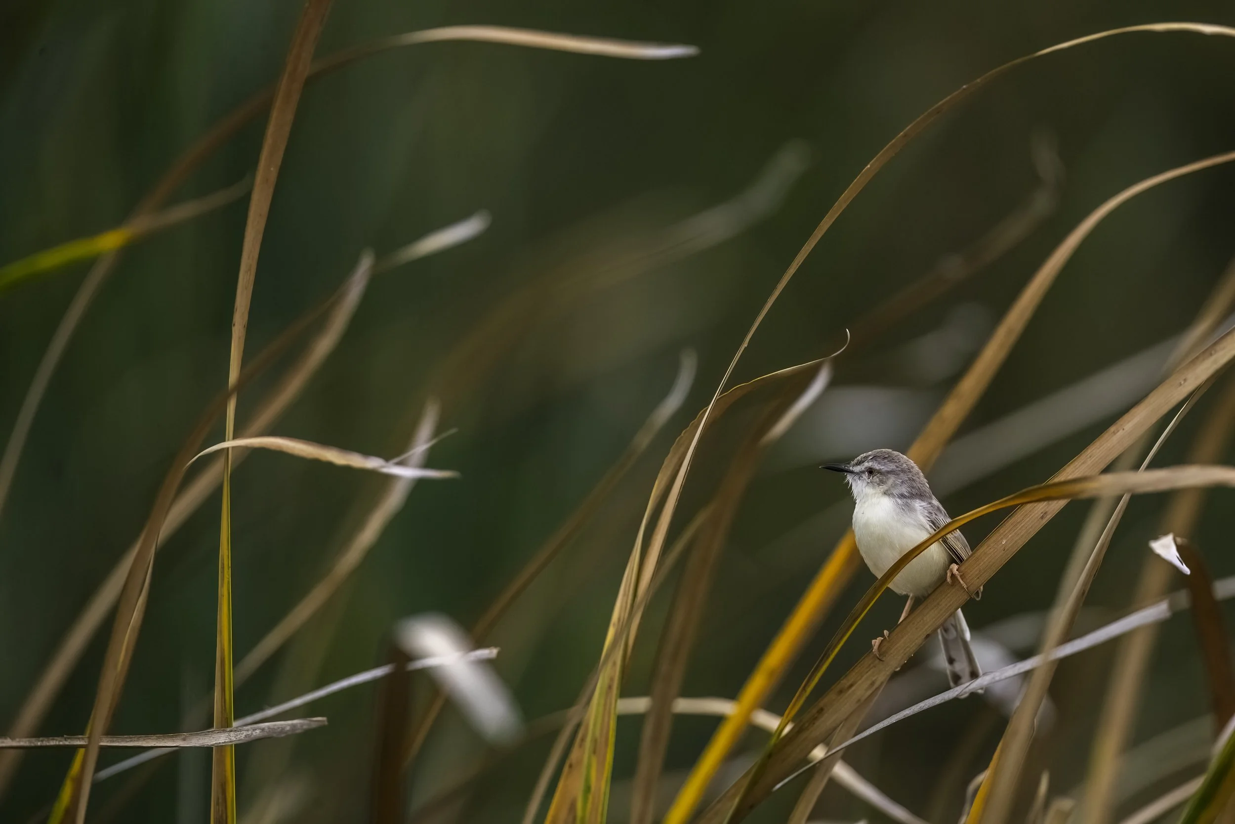 After the Ashy Prinia, this is the species most likely to be observed in Indian cities and agricultural areas. I have seen it in grassland, mixed thorn-scrub and grass, the grassy understory of dry forest, low grass tussocks next to ponds and rivers which is where the first photo is from, patches of scrubby vegetation inside urban areas, elephant grass patches, and even hopping on the ground in recently burnt areas or urban lawns! It usually lives (and sings) close to the ground, only rarely ascending into low trees some meters of the ground. This species poses an identification challenge (especially in the non-breeding season) with the similarly plumaged Jungle and Rufous-fronted Prinias, and to an untrained ear, there are several structural similarities to the song of a Graceful Prinia. When breeding, its distinctive buzzy tzzit-tzzit-tzzit-tzzit song, sounding like pulsing static or an insect, and strongest around 4-6 kHz, helps tell it apart in most of its range.