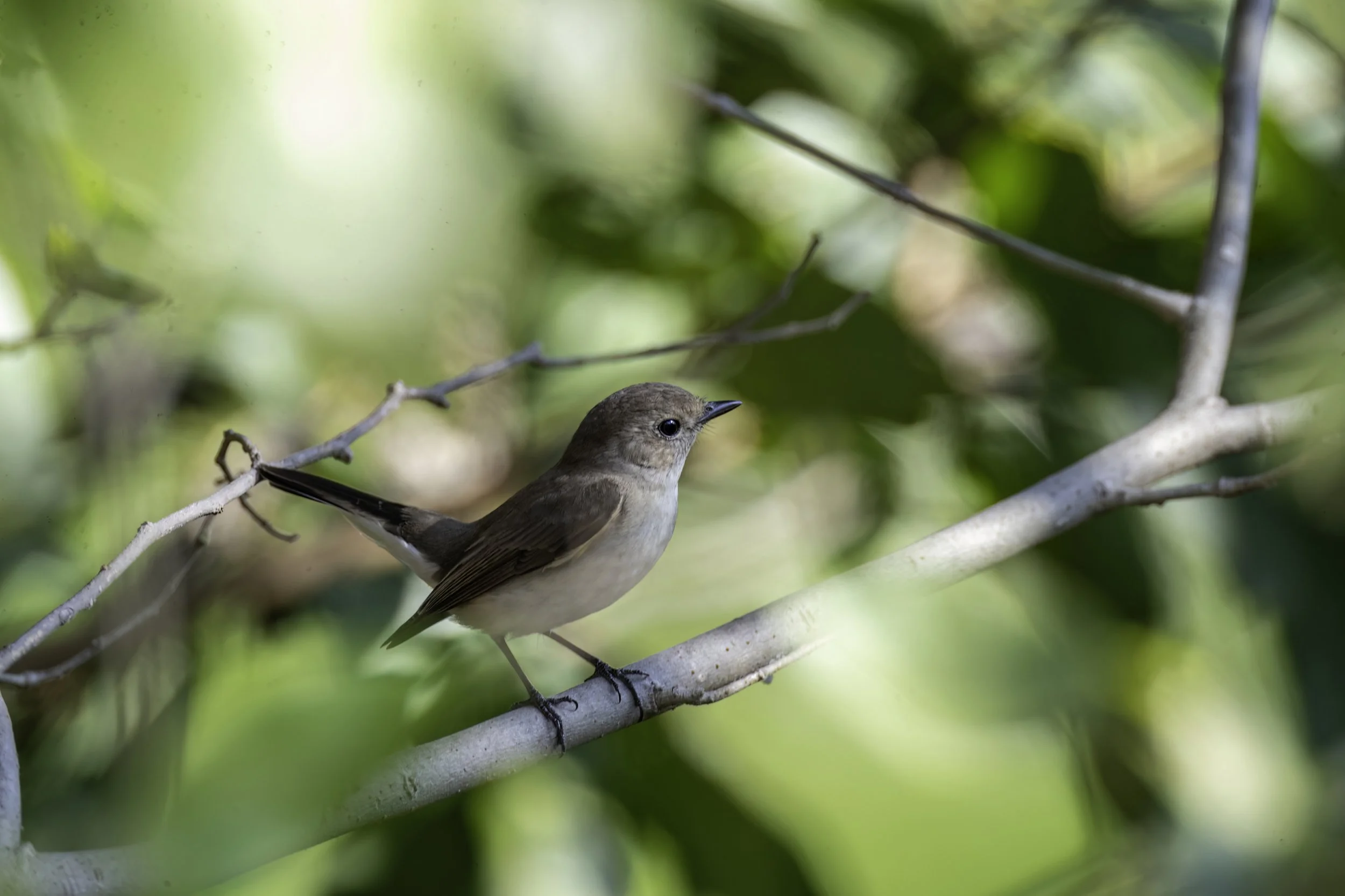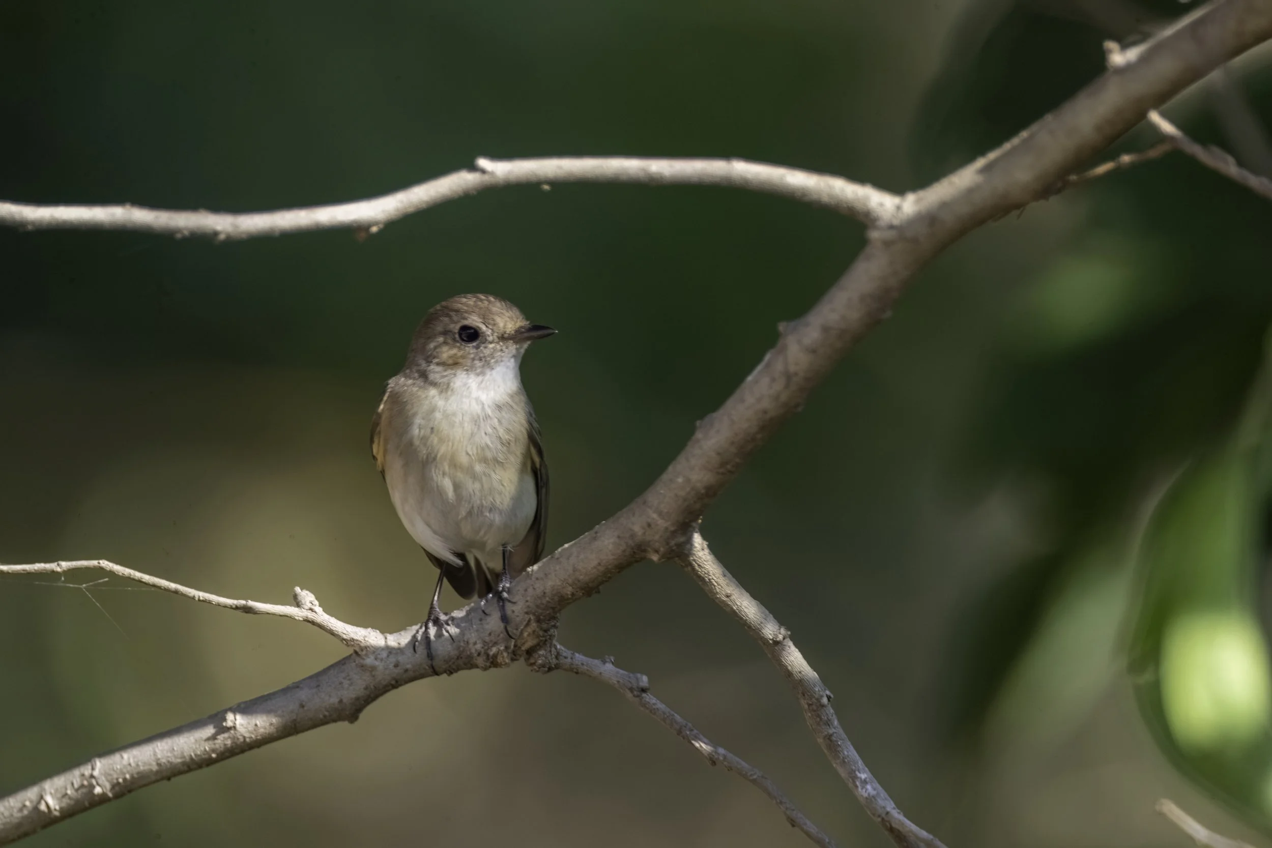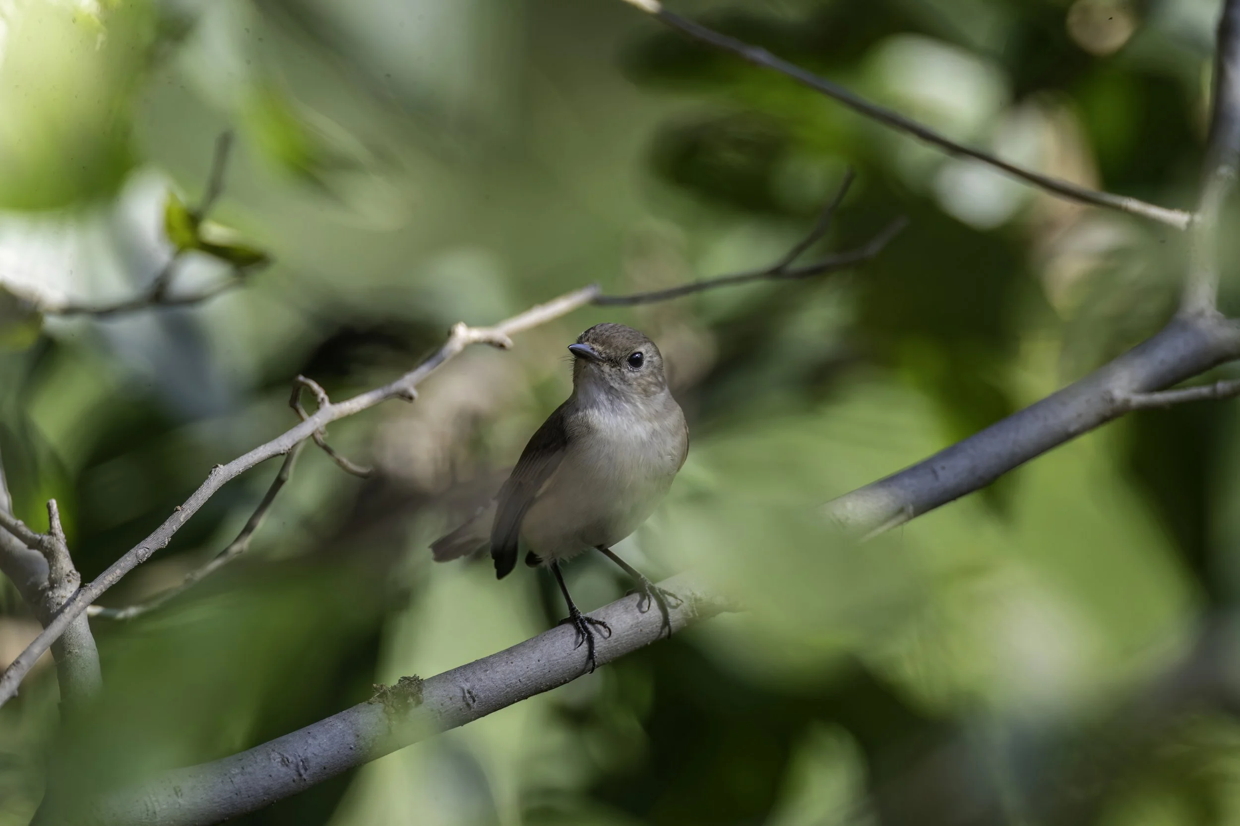 The Red-breasted Flycatcher (Ficedula parva) is a small passerine bird in the Old World flycatcher family. It breeds in eastern Europe and across Central Asia and is strictly migratory, wintering in south Asia. The breeding male is mainly muted brown above and white below, with a grey head and an orange throat. Females and immatures are similarly colored but lack the orange throat patch. The red-breasted flycatcher is a regular passage migrant in western Europe, whereas the Collared Flycatcher, which has a different migration route (wintering in Sub-Saharan Africa), is scarce. It forms a superspecies with the closely related Taiga Flycatcher and Kashmir Flycatcher and can be distinguished from the former by its different song, warmer-toned plumage and the more extensive orange throat patch. I photographed this beautiful little flycatcher in the forests around the Uma Maheshwaram Temple and was only able to spot the female. I could hear the male and spent a fair bit of time looking for him but he proved to be elusive. Maybe when he visits again he will graciously provide the opportunity.