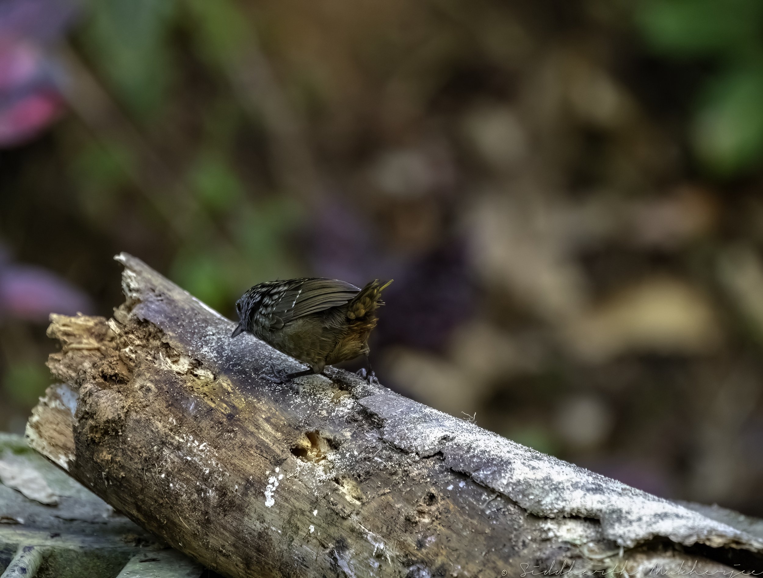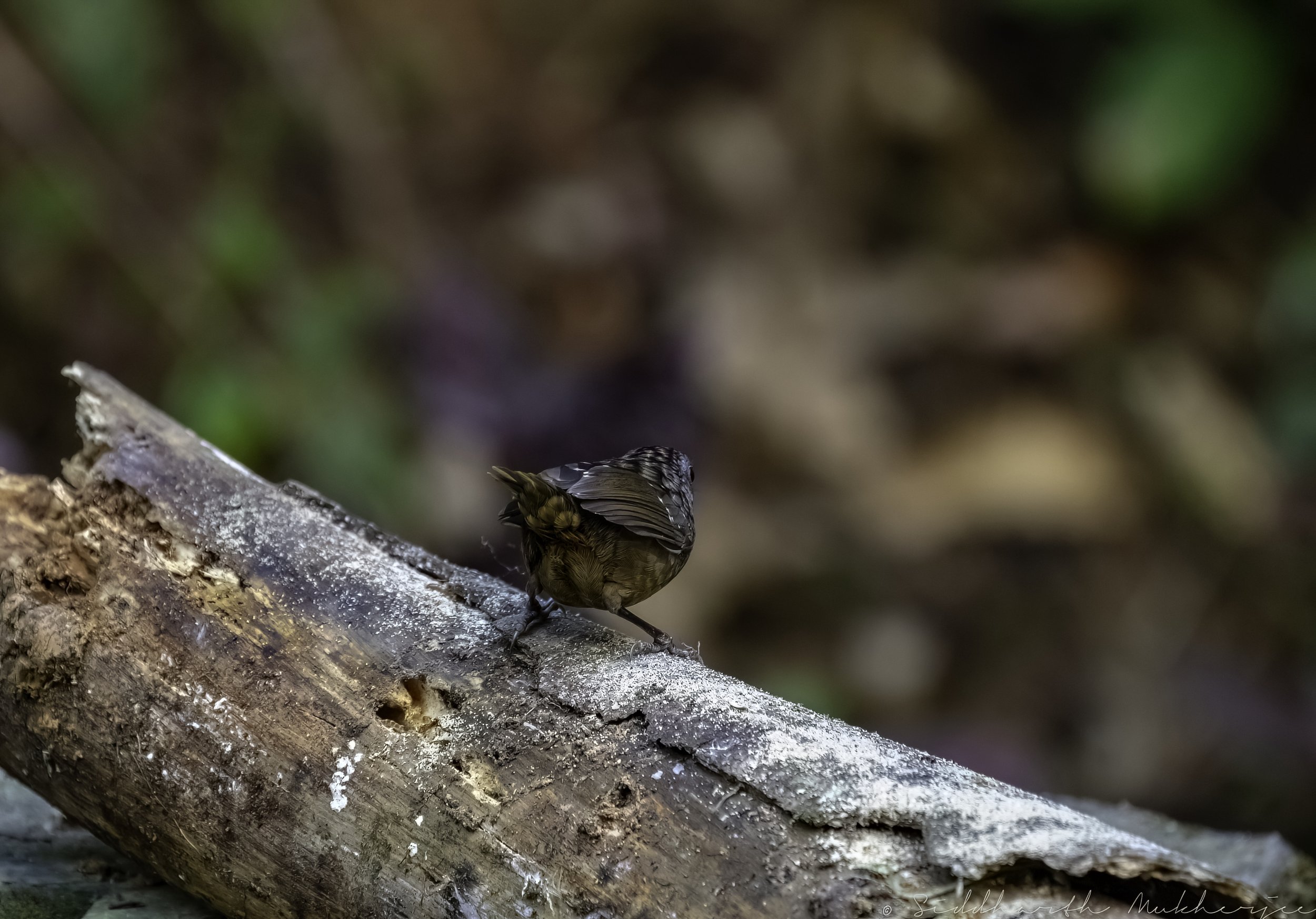 Photographing the Streaked Wren-Babbler requires patience and an understanding of its behavior. Pre-focusing on likely areas, getting to eye level, and using a fast shutter speed and continuous autofocus are helpful techniques. Using a long lens and wide aperture can help isolate the subject from a busy background. It is important to minimize disturbance to the birds.