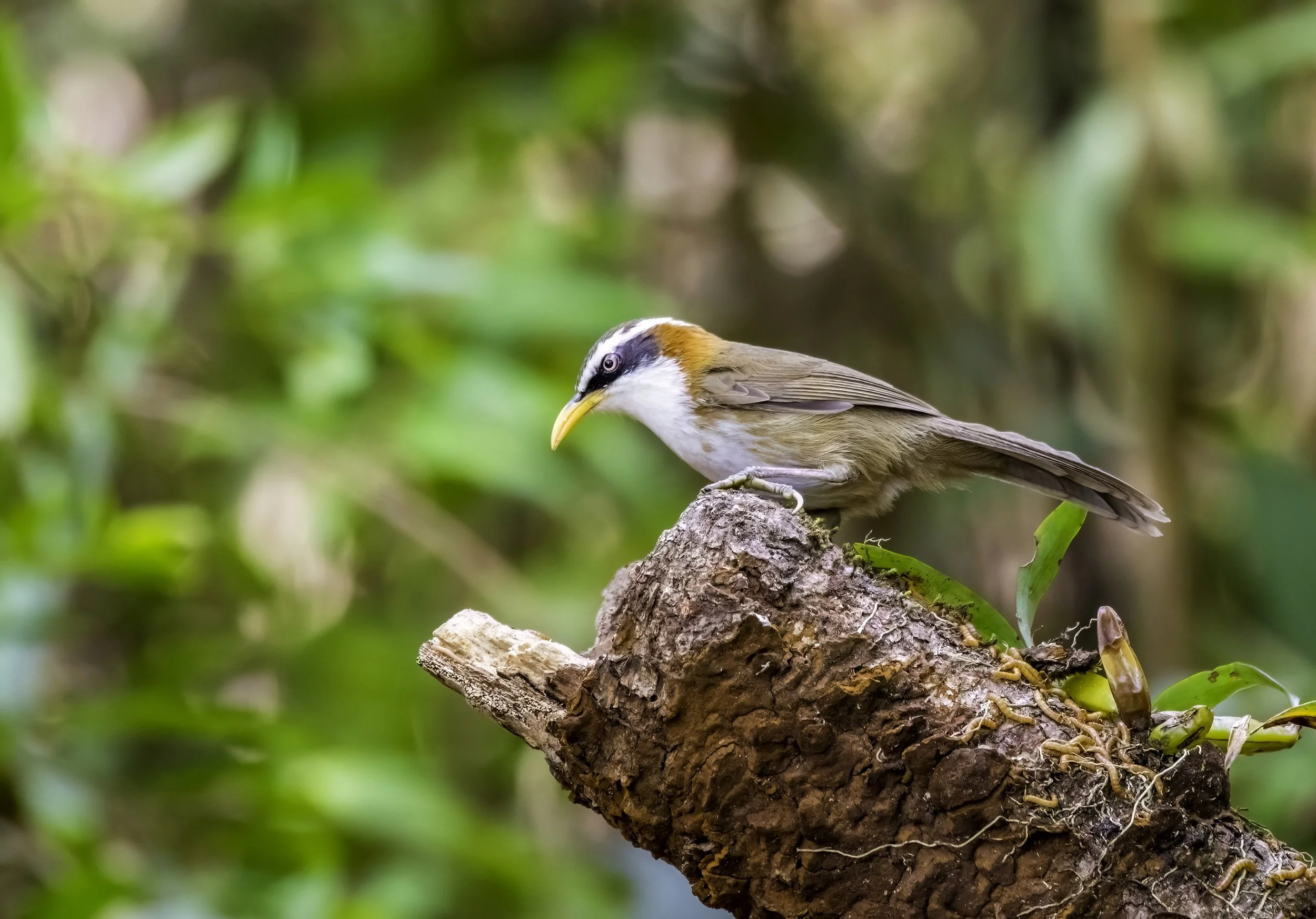 In close proximity to the Doi Pha Hom Pok National Park, it is the second highest mountain in Thailand and a part of the Dan Lao Mountain range, northwest of Chiang Mai, sharing the border with Myanmar. Doi Luang & Doi SanJu, can be easily accessed from Fang town. The mountain forest and no traffic make it easy to view birds. The entire area is very quiet, secluded and home to rare species like Mrs. Humes Pheasant, Long–tailed Sibia, Himalayan Cutia, Black–throated Tit, Black–eared Shrike Babbler, Whiskered Yuhina, Crimson–breasted Woodpecker, Fire–tailed Sunbird to name a few.