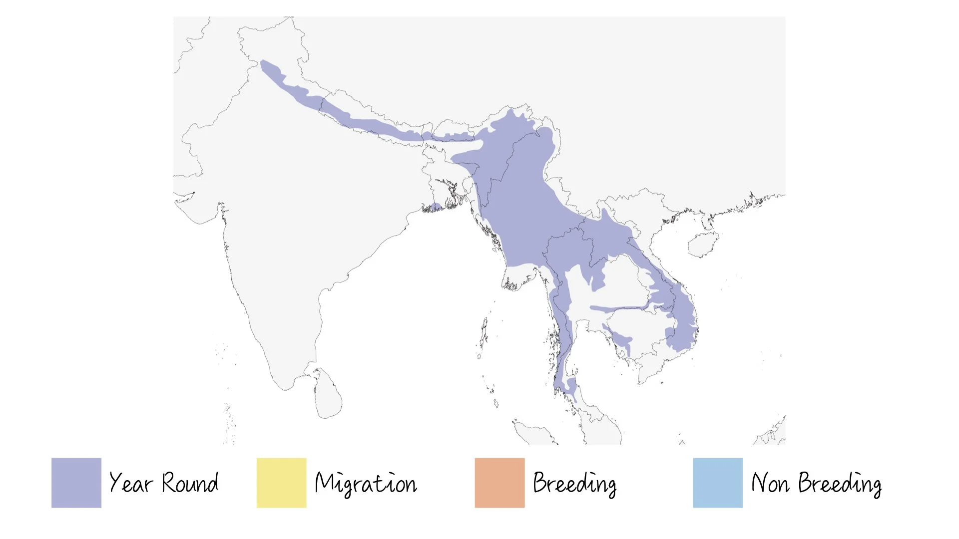 Pomatorhinus schisticeps nuchalis - Distributed in Central and South East Myanmar (East of River Irrawaddy).