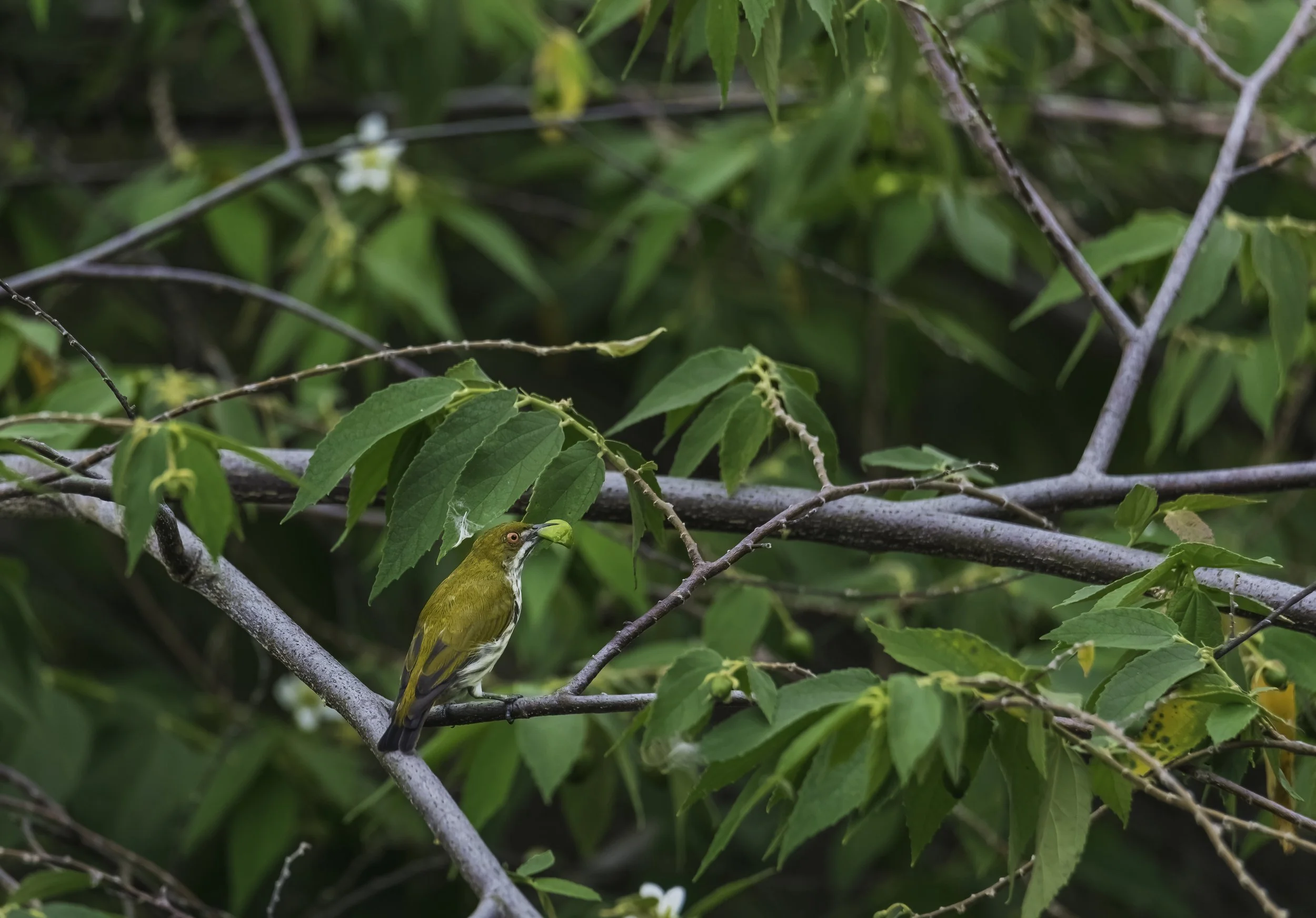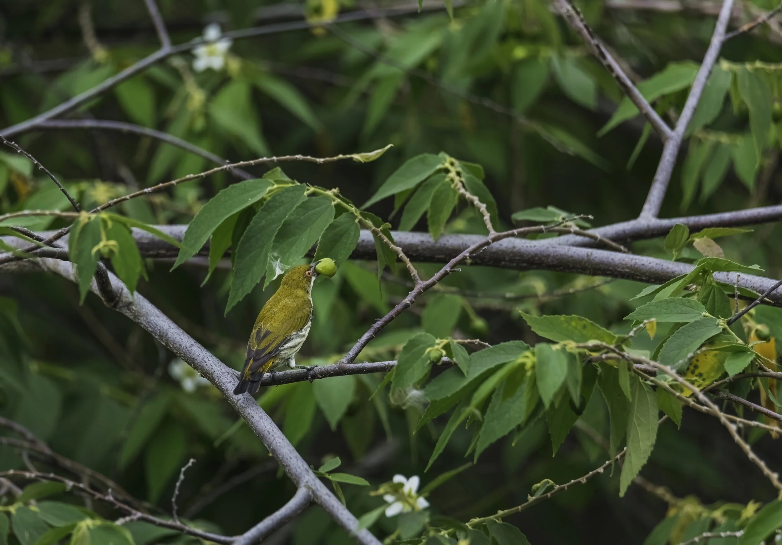 Finding and photographing the Yellow-vented Flowerpecker (Pachyglossa chrysorrhea) near the Kum Nangpaya hotel is a highlight for birdwatchers visiting the Kaeng Krachan National Park. Located just a 2-minute drive from the park entrance, Kum Nangpaya's lush gardens and proximity to the park’s diverse ecosystems make it a prime stakeout for this tiny, active bird. One can often find the Yellow-vented Flowerpecker in the hotel’s spacious gardens, particularly when mistletoe or fruiting trees like mango are in bloom. Despite its common status in Thailand, it is a challenging subject due to its rapid movements and preference for high canopy levels.
