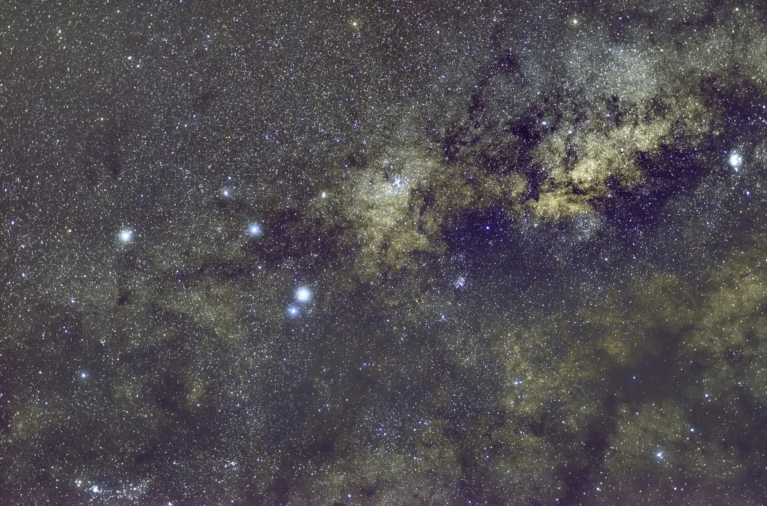 This image is a stack of 37 light frames and 26 dark frames stacked and coloured in Siril with no star reduction used.