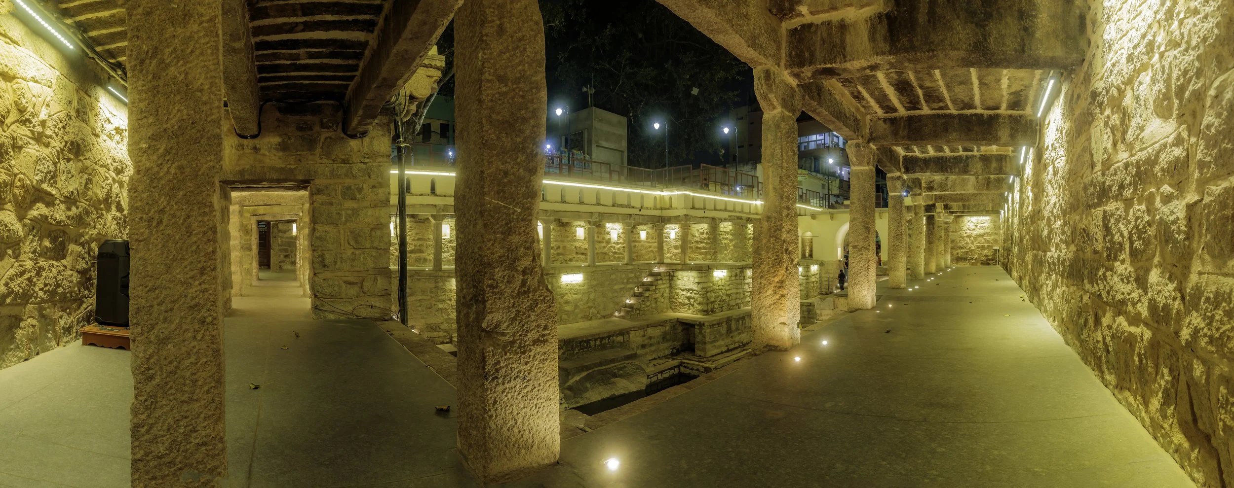 The Bansilalpet stepwell is believed to have been built in the 16th or 17th century primarily meant to access, manage and conserve ground water. The exact age of this stepwell made of stone masonry and lime plaster with architectural features reflecting an amalgamation of styles from the Kakatiyas to the Nizams is not known as no records seem to exist on its commission and construction. This medieval age structure is beautifully detailed, ornamented and stands as a testimony to exquisite craftsmanship and architectural heritage. This six-layer stepwell bears the indefatigable mark of the Kakatiyas, the artistic touch of the Nizams and the stamp of the British Empire. Earlier known as Naganah Kunta, this freshwater stepwell from the Kakatiyan period, during the rule of the British, became a part of a planned model village conceptualised and built by the British resident Terence Humphrey Keyes funded by Seth Bansilal after whom the stepwell and village came to be known.